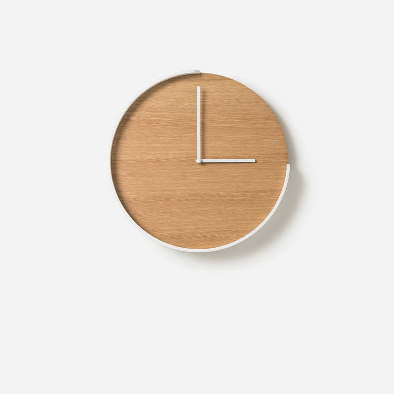 If you're watching the clock, it helps when said timepiece is aesthetically pleasing. The Segment Clock in modern oak veneer fits the bill beautifully, with an ultra simple face and creative black plywood frame detail.