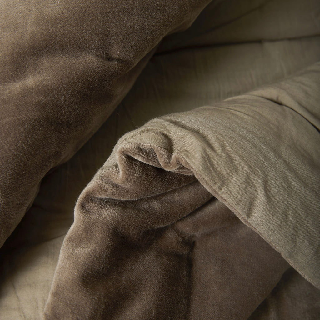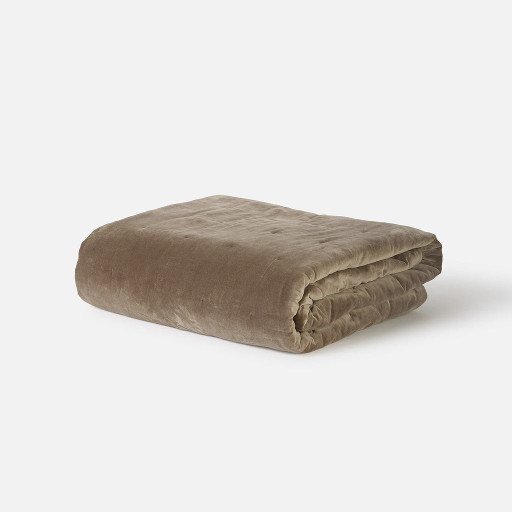 Add texture to your bedroom with the beautifully soft Velvet Quilt in warm Doe grey hue.