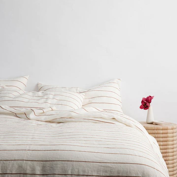 Linen Duvet Cover - Cedar Stripe