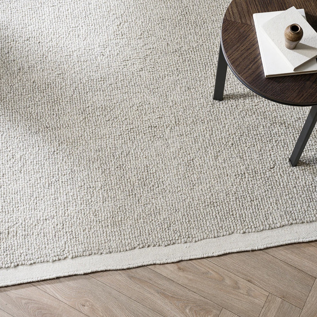 Create a casual yet refined look with the softly looped pile of the Clifton rug. Handcrafted from 100% New Zealand wool, the uniform texture and flat edge finish offers a subtle sense of structure, while its neutral, bone palette adds warmth and understated elegance to interiors.