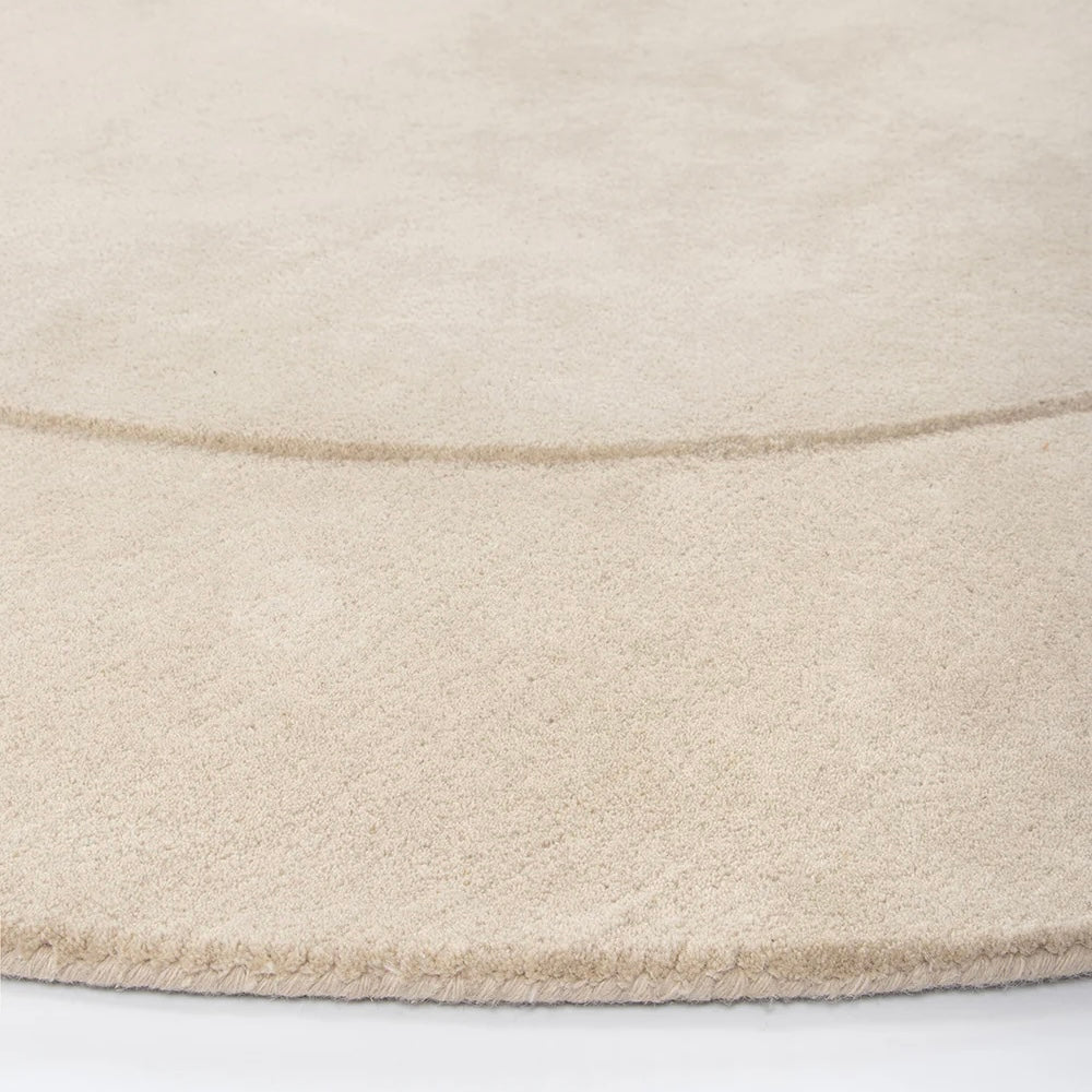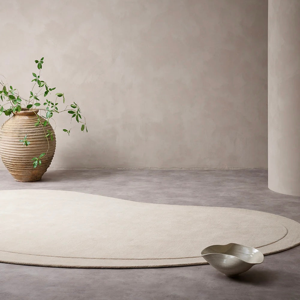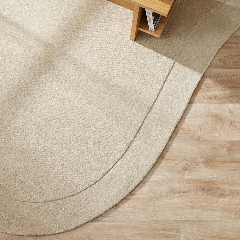 Add a stunning focal point to your space with the elegantly curved Form rug. Handtufted from 100% wool, the dense underfoot texture conveys a sense of luxury, while the cut-pile border adds dimension to the creamy, uniform base.