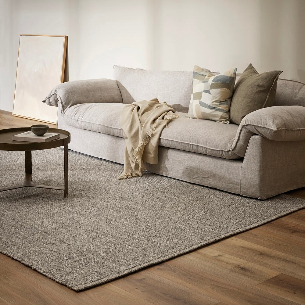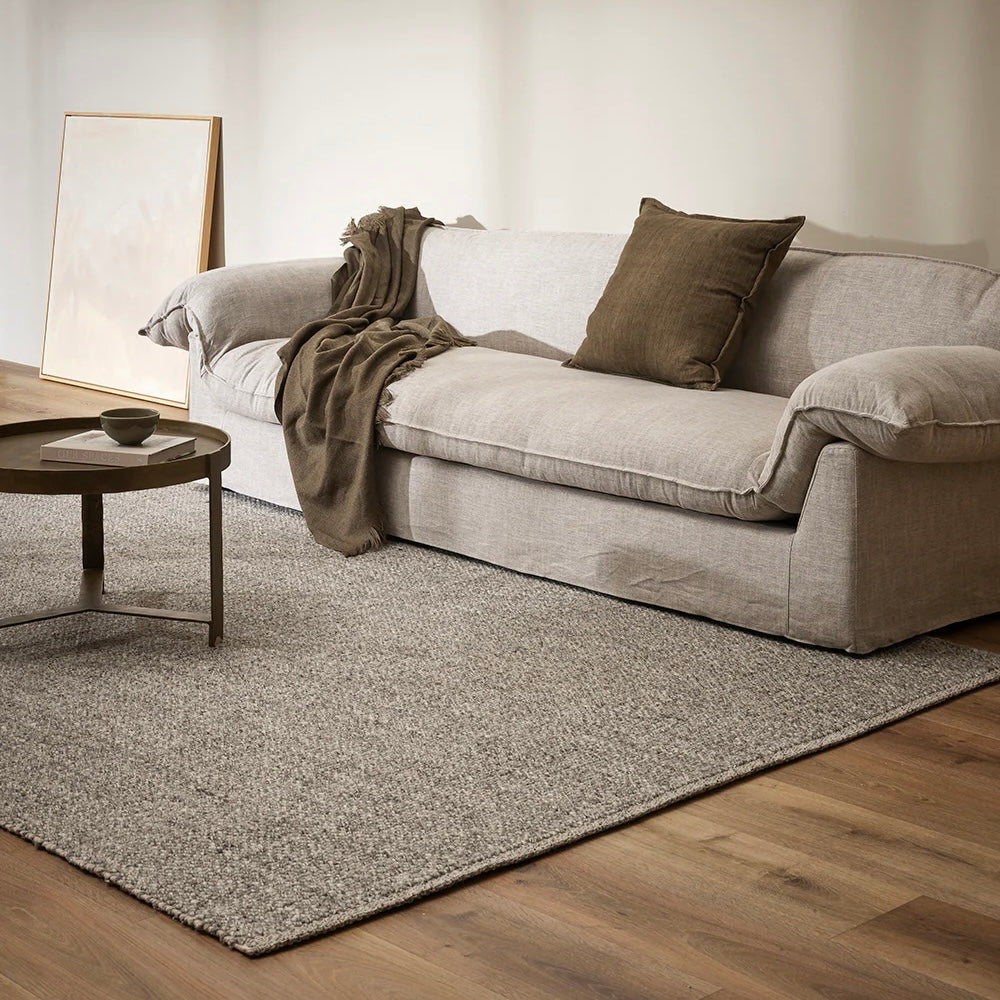 Create a timeless living space with the with the beauty of this wool-blend floor rug in a soft ash. Handwoven in a simple 1-1 weave, the Nebraska adds warmth and interest with its subtle mottled tones and versatile structure. A staple for contemporary living.