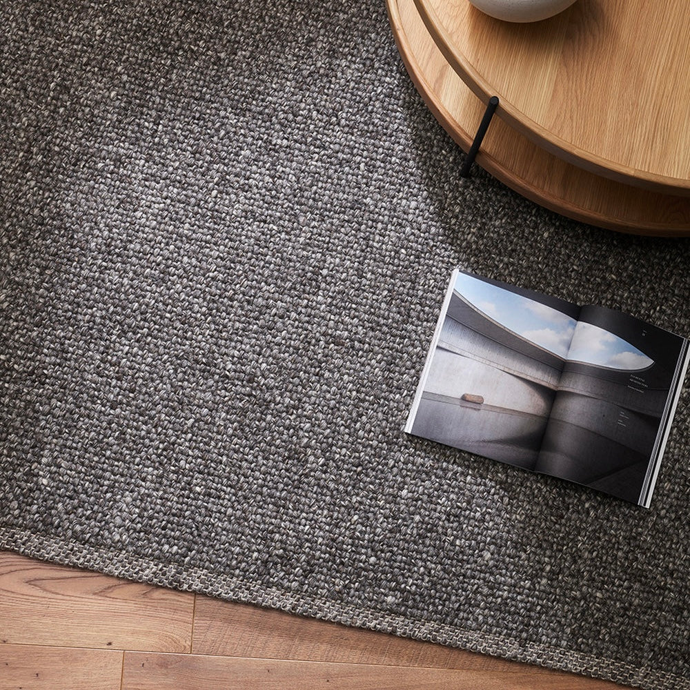 Create a timeless living space with the with the beauty of this wool-blend floor rug in muted charcoal. Handwoven in a simple 1-1 weave, the Nebraska adds warmth and interest with its subtle mottled tones and versatile structure. A staple for contemporary living.