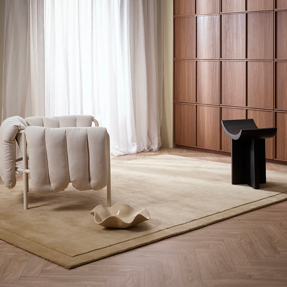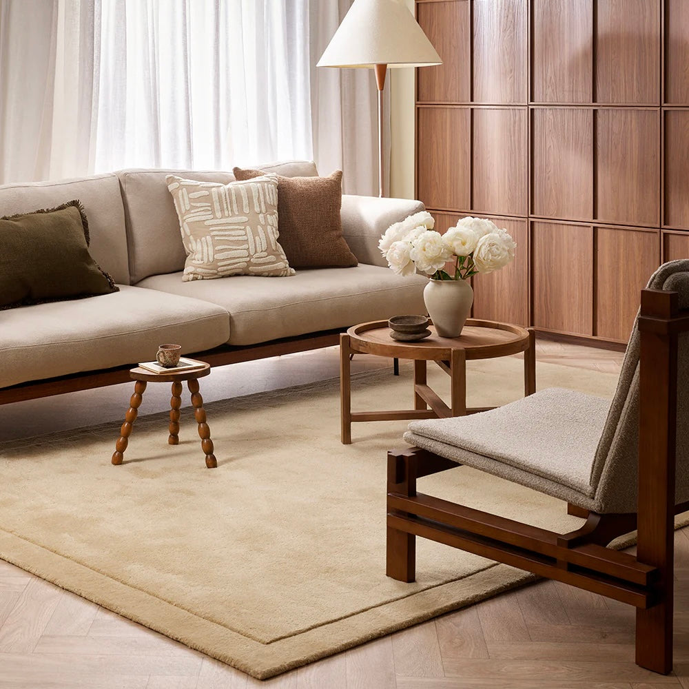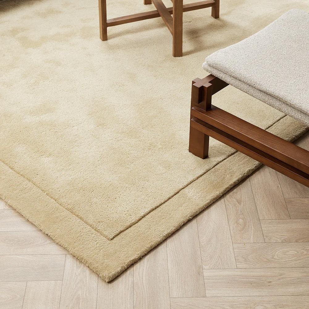 Immerse yourself in the soft underfoot texture of the Norfolk floor rug. Handcrafted from pure New Zealand wool, the warm sand colourway and sumptuous 27mm pile embody understated luxury. Finished with a minimal cut-pile border, this refined design adds a beautiful sense of depth and form to spaces.