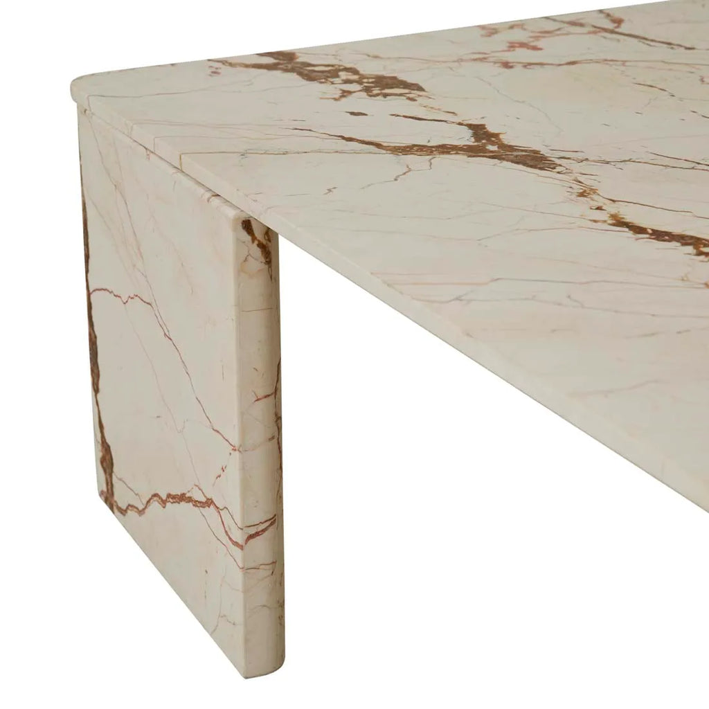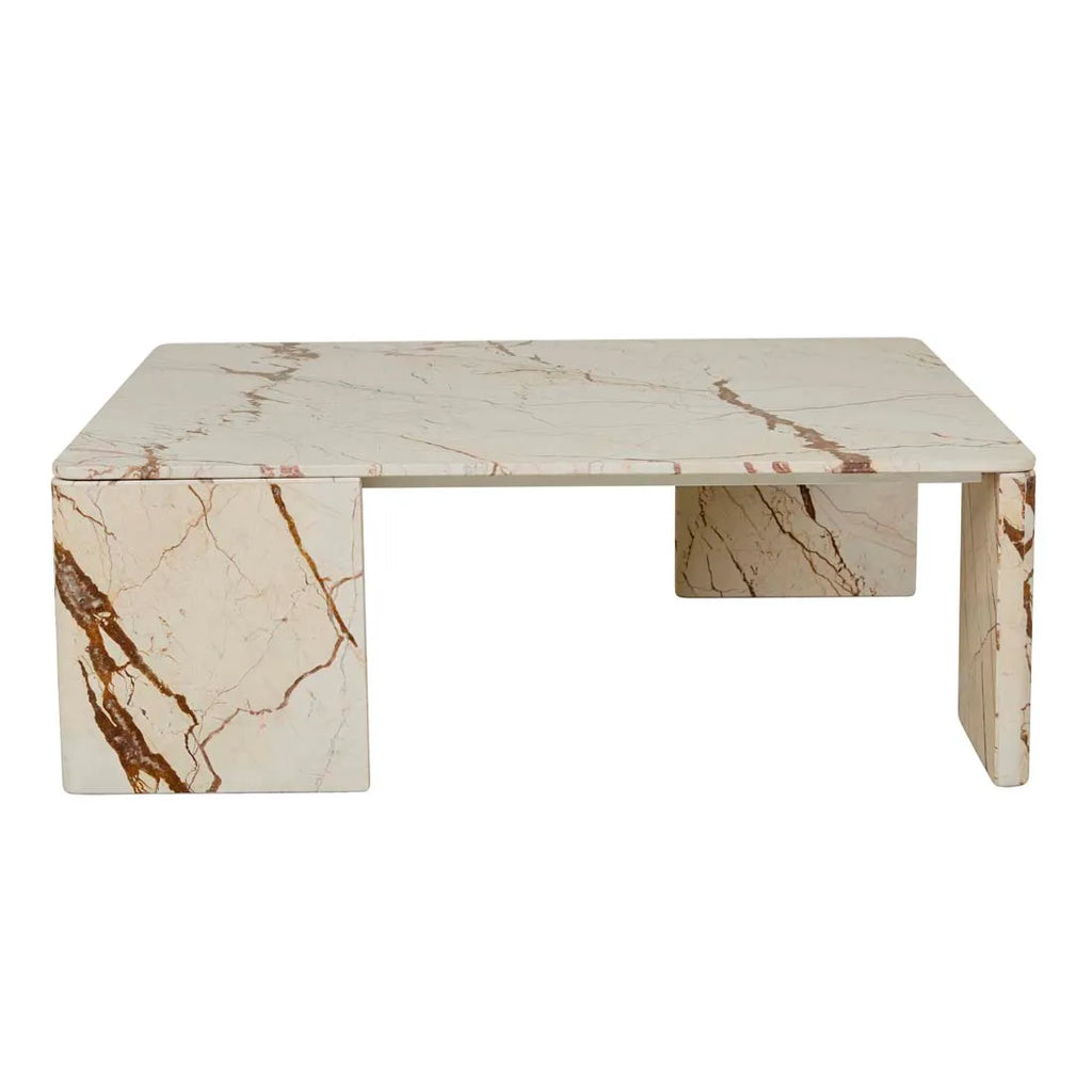 This stunning coffee table showcases marble in its best light. The square shape, unique slab legs, and overall design are set to make a statement in modern and classic interiors alike.