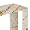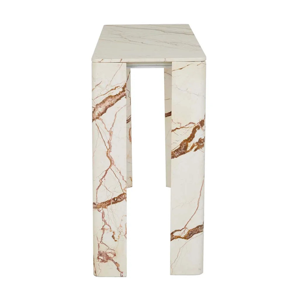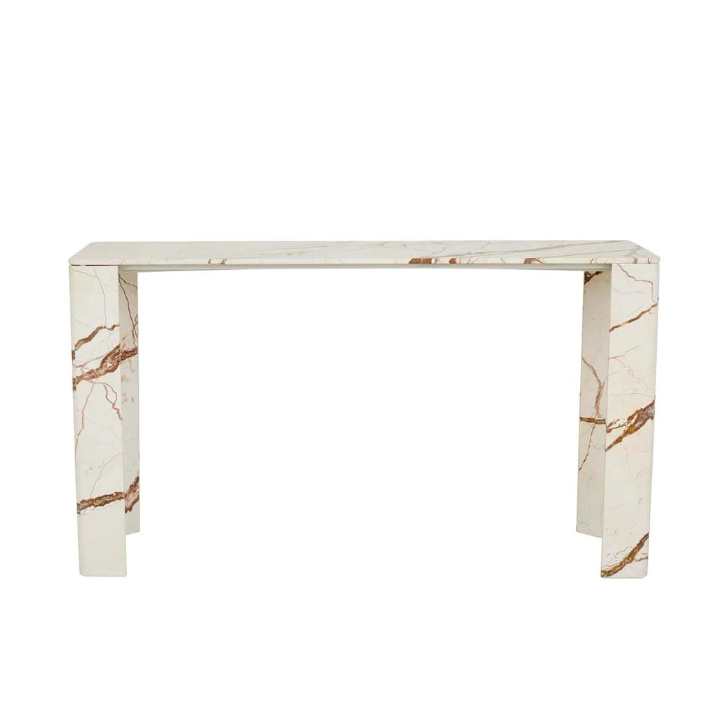 Versatile and sleek, the Atlas Slab Console Table is crafted in richly veined marble. Its solid form and slab legs lend it interest and contemporary style.