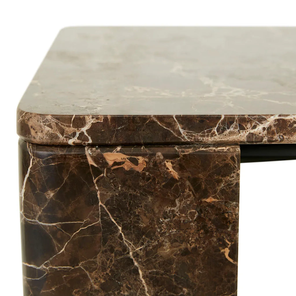 With its triangular marble legs and soft round over edges, the Atlas Slab Console Table in Emperador Marble is a testament to modern design and structural confidence. This piece combines elegance with durability, making it an ideal addition to any contemporary space seeking sophistication and functionality.