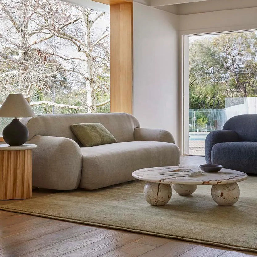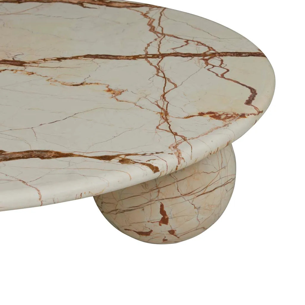 Contemporary style and beautiful materials come together effortlessly on the Amara Round Leg Oval Coffee Table. This contemporary coffee table has bold marble pillar legs for a solid look. The perfect touch for any living area, this table is a must-have for any home.