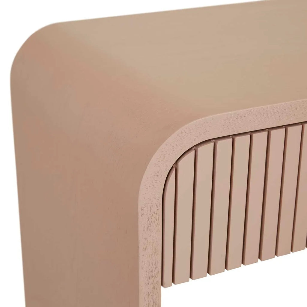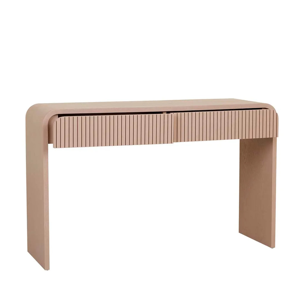 Elevate the look in any room with the versatile Chloe Channel Console that marries sleek style with visual interest and texture. Achieved by borrowing notes from classic art deco style the Chloe Channel is crafted in veneer with an elegantly curved case and slatted drawers that open to reveal functional storage space.