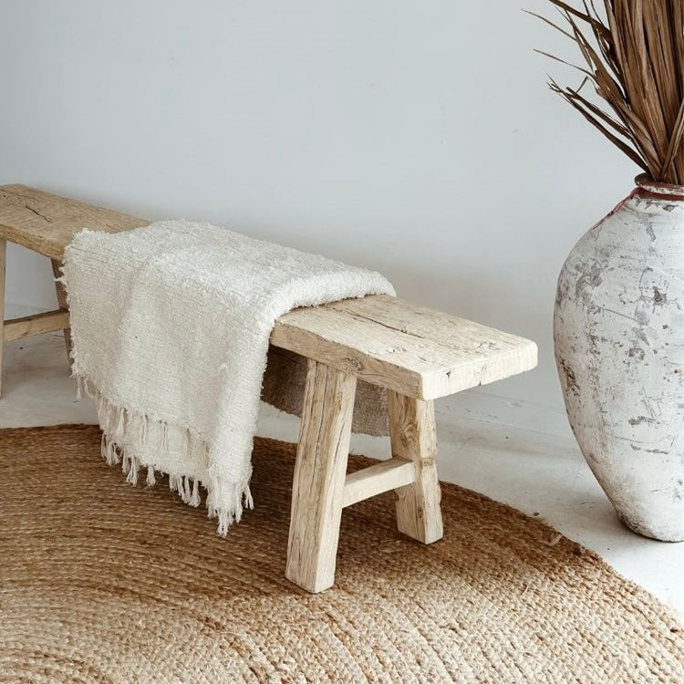 Our elm benches are the perfect companion for the modern bohemian or coastal home. Made from 100% reclaimed Elm timber. The timber is slightly bleached and skilfully handcrafted into unique furniture with a lived-in look and feel.