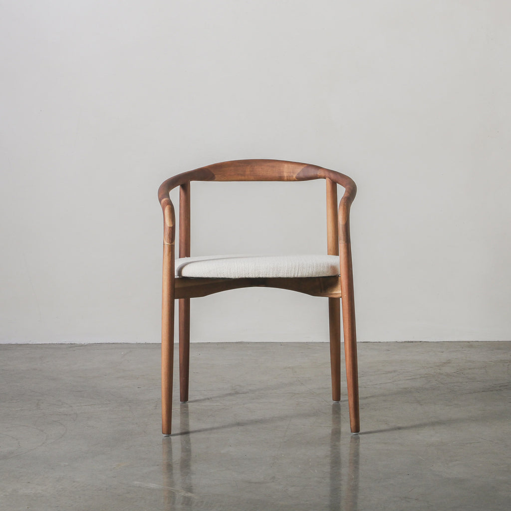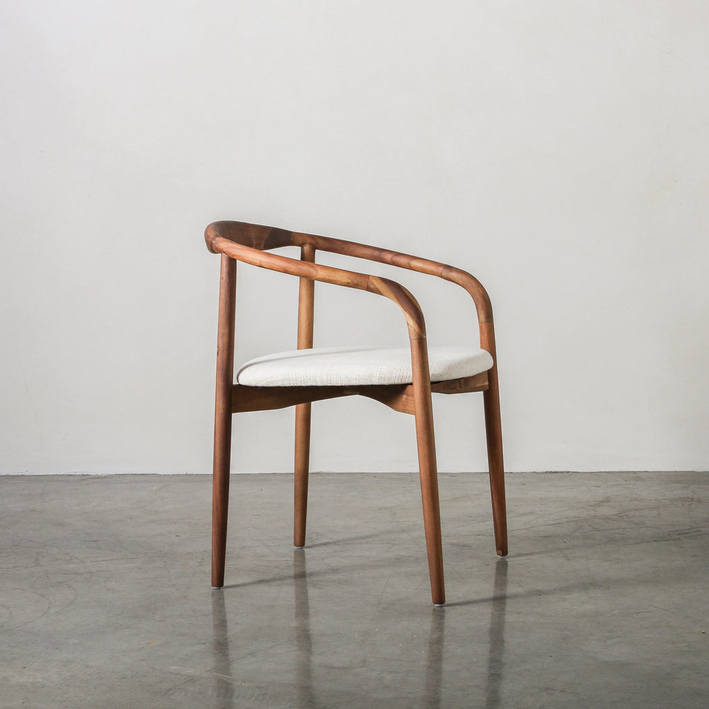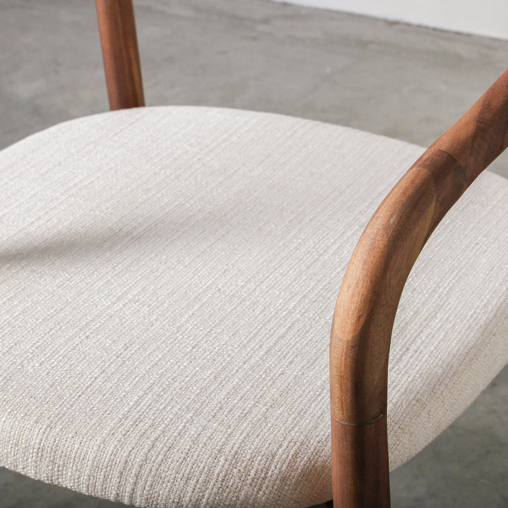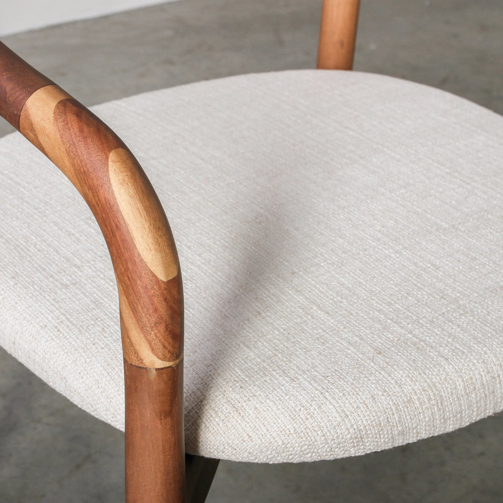 The Essence Dining Chair is a refined balance of form and comfort, featuring a curved Acacia wood frame paired with either a fabric, leaf rope or paper rope seat. The gentle curvature of the frame enhances both support and visual fluidity, creating a cohesive silhouette that integrates seamlessly into a variety of interiors. The contrast between the natural wood grain and the seat adds depth, while its thoughtful proportions ensure both style and everyday usability. Designed for versatility, the Essence Dining Chair serves as an elevated addition to dining spaces, balancing materiality and function with a curated approach to design.