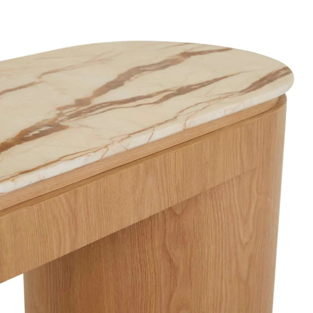The Pluto Console makes a bold statement with a minimalist form. Impressive circular legs complement the rounded silhouette, a luxurious touch for an entryway or living space.