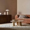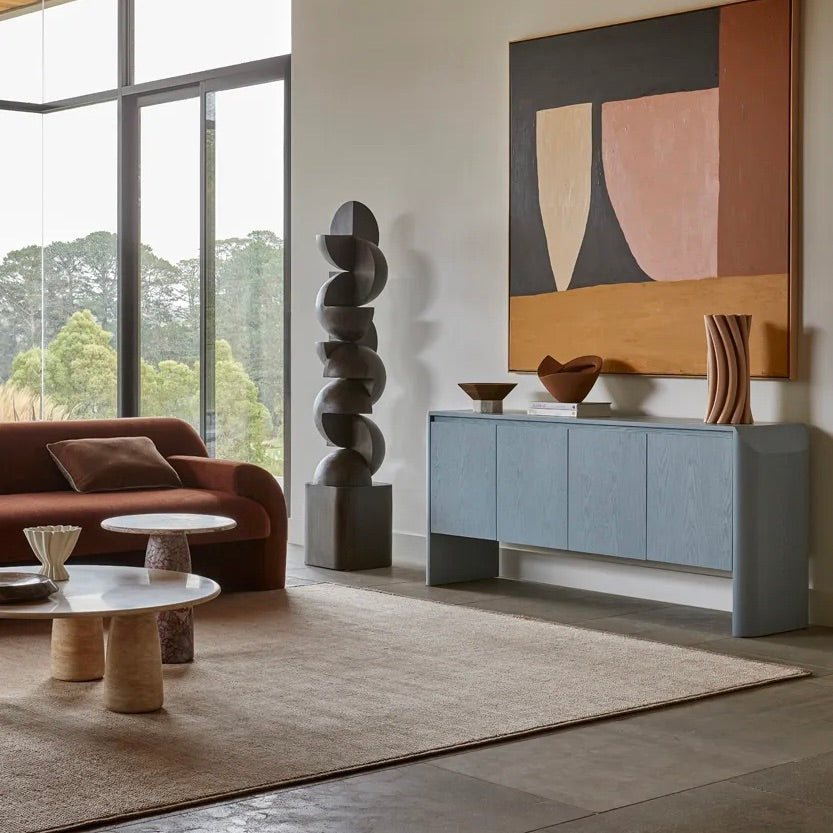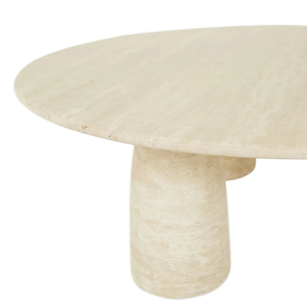 Fluid, organic contours define the Puddle Coffee Table, capturing the raw beauty of natural travertine through minimalist design. Natural travertine forms both sculptural base pillar and sweeping organic top, creating balanced visual weight throughout. Each unique stone surface tells nature's story while delivering practical elegance for refined living spaces. This versatile contemporary piece suits indoor and outdoor settings, becoming centrepiece-worthy through its water inspired silhouette and premium materiality.