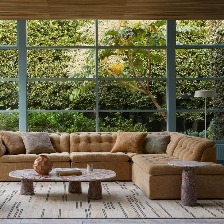 The Puddle Coffee Table in Polished Russet Dapple brings a contemporary touch to any living space. Inspired by bodies of water, its organic shape and solid marble top create a striking visual appeal. This coffee table blends modern design with natural elements, making it a perfect centrepiece for stylish interiors.