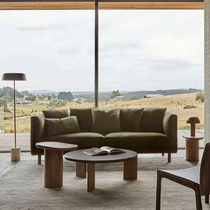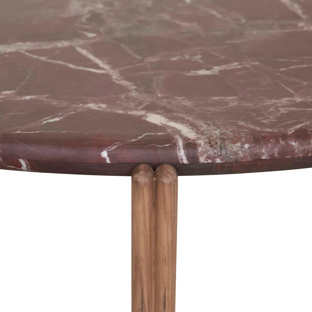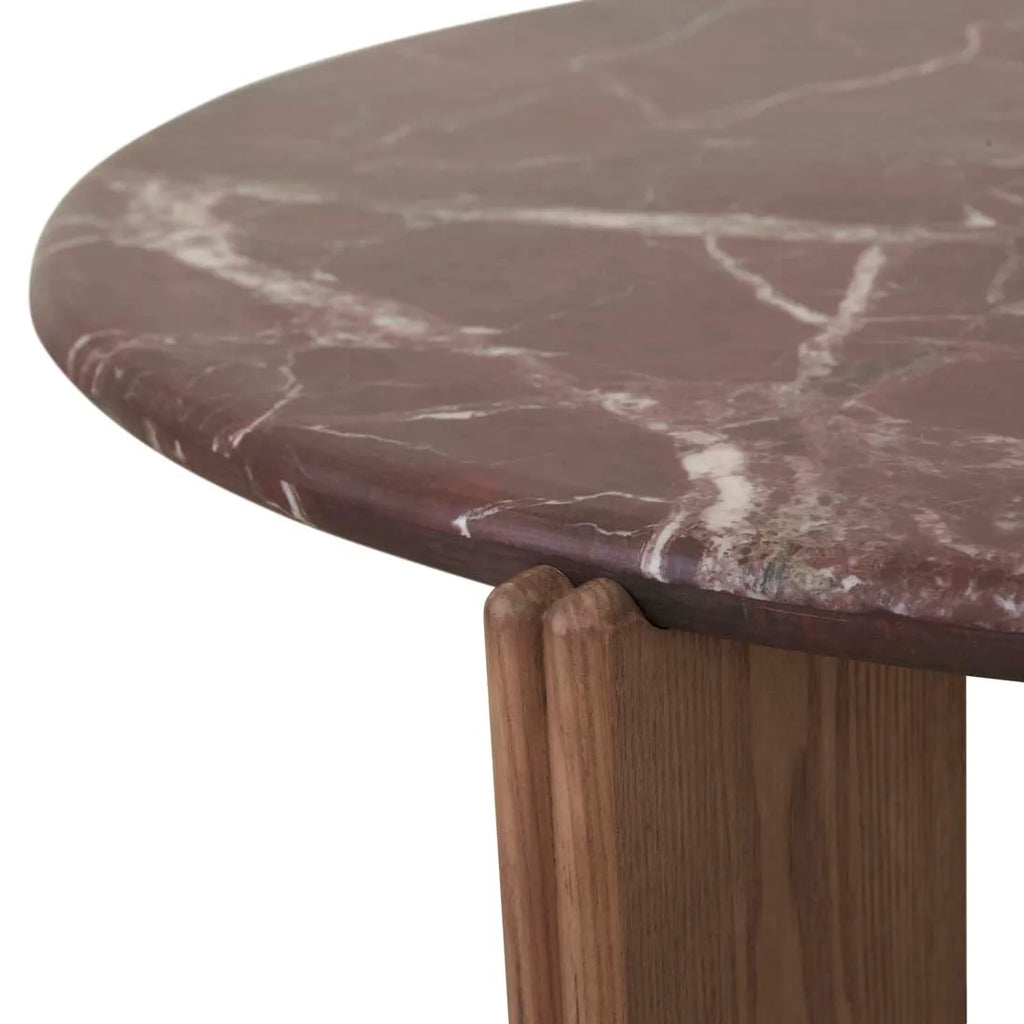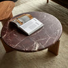 The Ray Marble Coffee Table in Matt Rouge Marble and Smoked Ash blends simplicity with softness for a timeless yet contemporary look. Its matt rouge marble top is inset into a layered tri-leg frame for depth and style, while double-bullnose profiles enhance its smooth yet textural feel. Finished with a smoked ash veneer, this sophisticated table adds warmth and elegance to any indoor space.