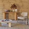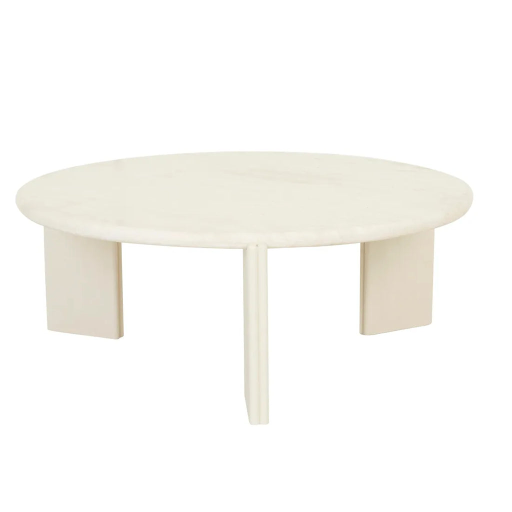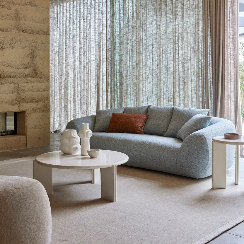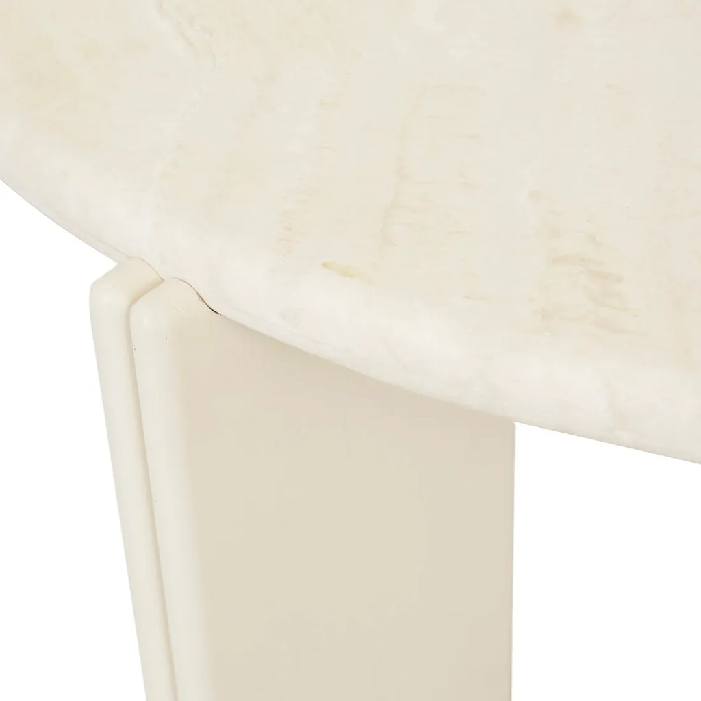 The Ray Marble Coffee Table in Natural Travertine blends simplicity with softness for a timeless yet contemporary look. Its travertine top is inset into a layered tri-leg frame, while double-bullnose profiles enhance its smooth yet textural appeal. Finished with a tonal painted ash veneer frame, this sophisticated coffee table adds natural beauty and refined style to any space.