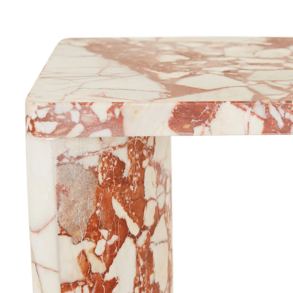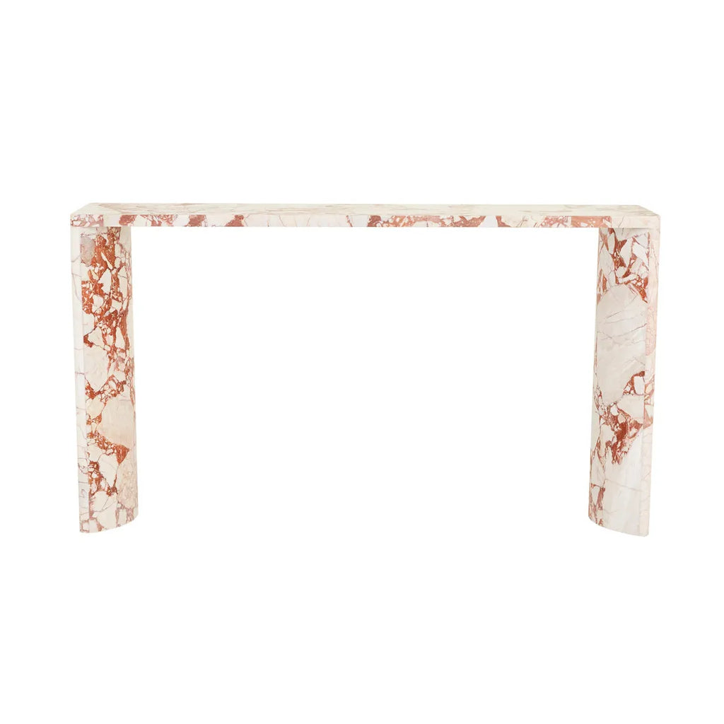 Elevate your home décor with the Verity Console Table featuring concave crescent aesthetics and crafted from Russet Dapple. It offers a refined and sophisticated look. Perfect for modern interiors, this console table blends elegance with practical design. Its durable construction ensures it will be a standout piece in any room, designed for indoor and outdoor use.