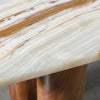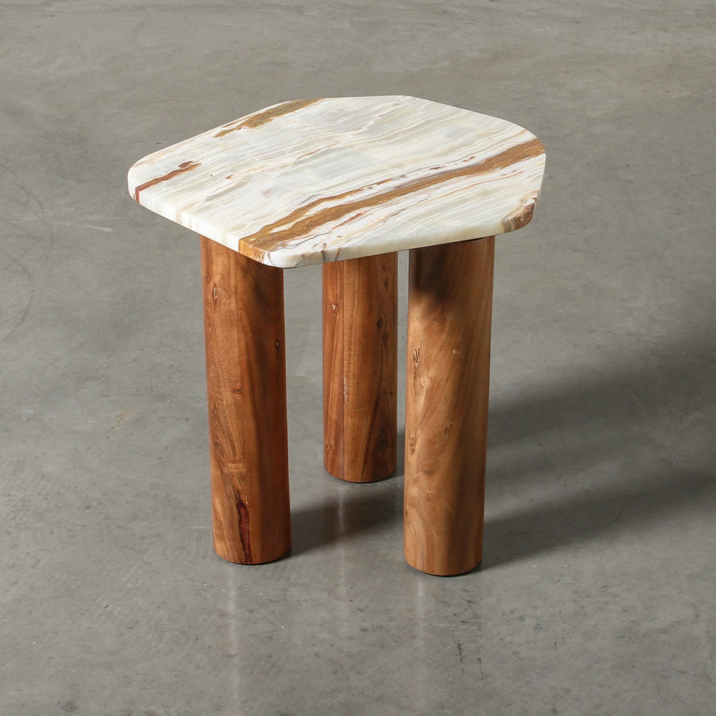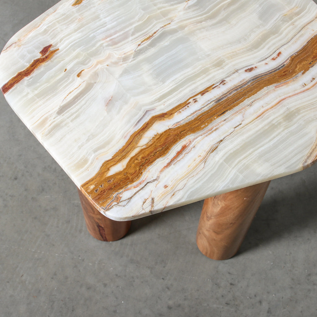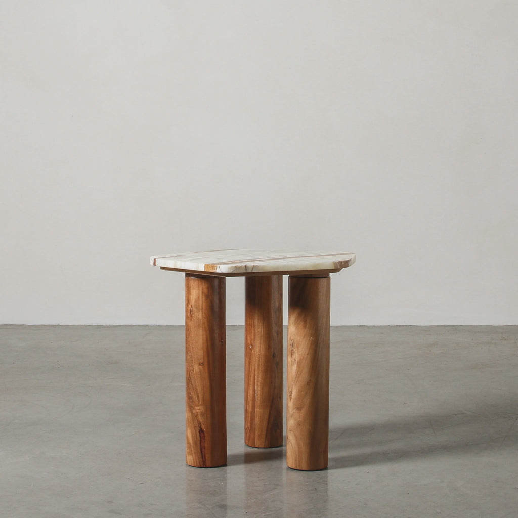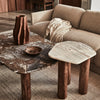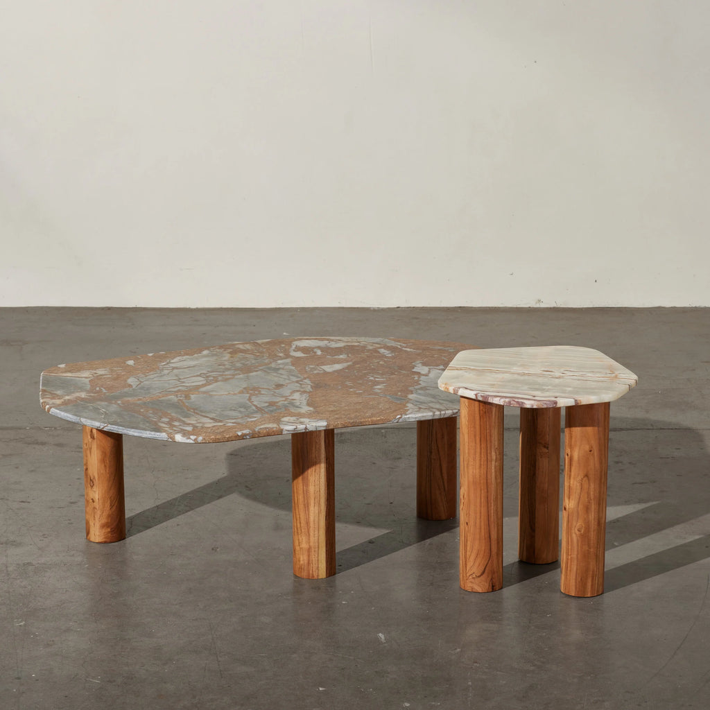 Meet the Waverly Table, a marble top side table that exudes sophistication. Its irregular rounded table shape, characterised by organic smooth lines, adds a grounded natural feel to a room. Crafted with meticulous attention to detail, the Waverly Table features three column-shaped wooden legs that harmoniously blend with the stone top material and texture. Select from four exquisite table top finishes: pink lagoon, grey lagoon, red alicante or onyx travertine. Each option showcases the inherent beauty of natural marble, allowing you to select the one that best complements your interior. The Waverly Side Table complements the Clifton Coffee Table, with slightly taller legs making it able to tuck on top the side of the coffee table like an extension of the tabletop space. This cohesive and stylish combination adds a touch of refined elegance to your living space.