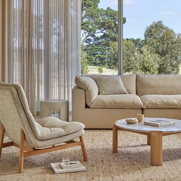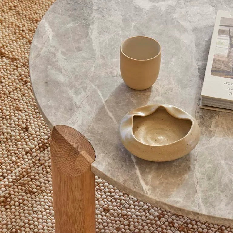 The Willa Marble Coffee Table in Grey Marble and Light Oak showcases a blend of contemporary style and versatility. Its elegant marble top combined with a light oak ellipse-shaped leg creates a stunning focal point in any living space, embodying modern design with its mixed materials and sophisticated aesthetic.