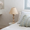 The Evie Table Lamp: A marvel of design and artistry awaits. Crafted with natural raffia, its handcrafted lampshade features exquisite scalloped edges that add a delicate touch to its unique spherical shape.