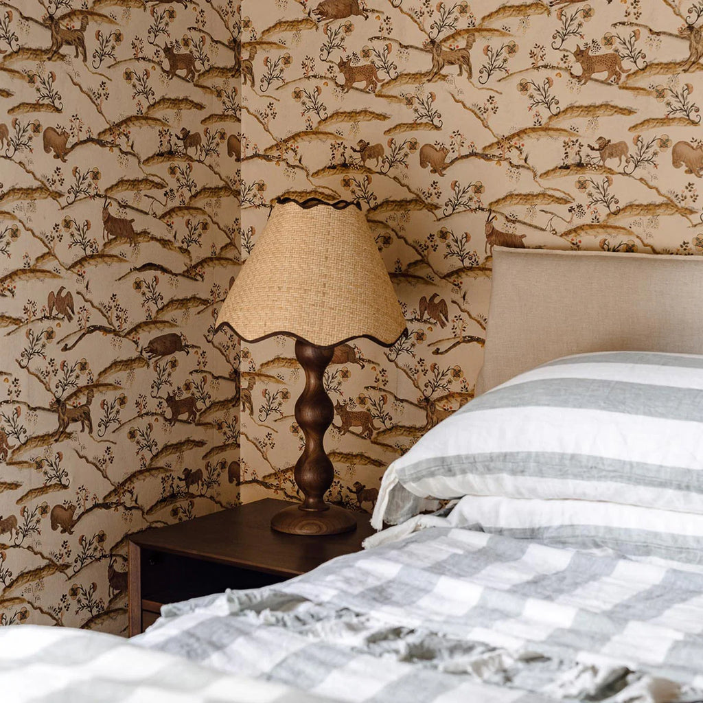 The Evie Table Lamp: A marvel of design and artistry awaits. Crafted with natural raffia, its handcrafted lampshade features exquisite scalloped edges that add a delicate touch to its unique spherical shape.