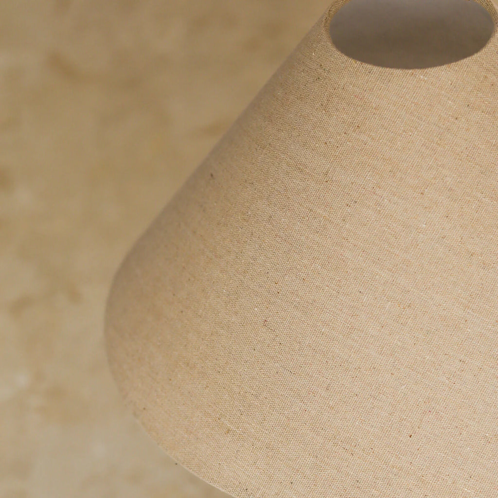 The lampshade is handmade and made of recycled linen which allows for natural imperfections, texture and surface inconsistencies or variances in fabrics. These are not considered faults.
