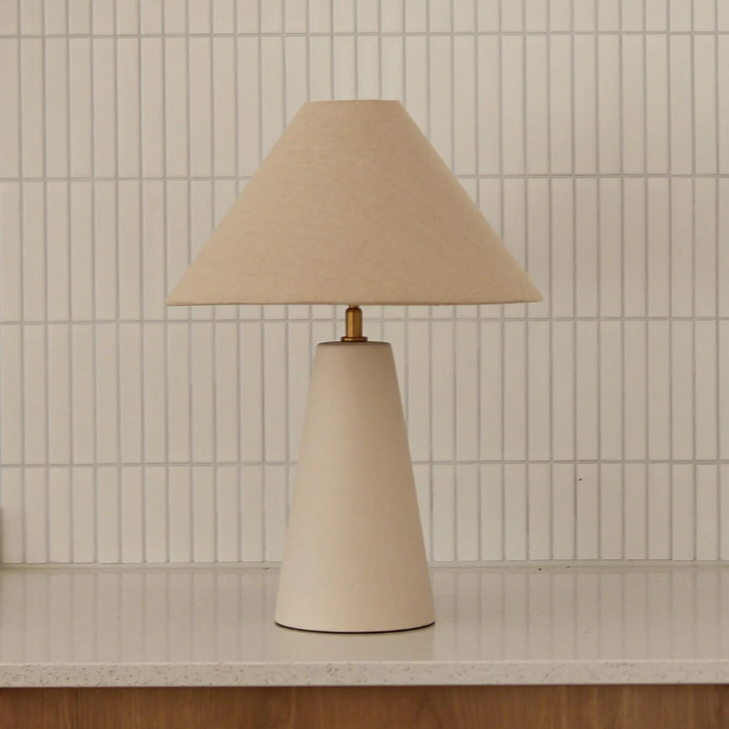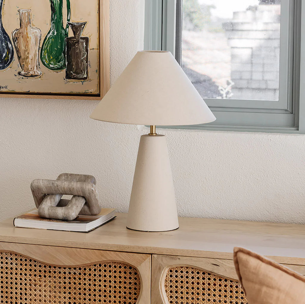The Florence Table Lamp gives beautiful shape and elegance to your home. With a natural hue and feature tapered shade and base, it's the perfect accent addition that seamlessly blends into any space.
