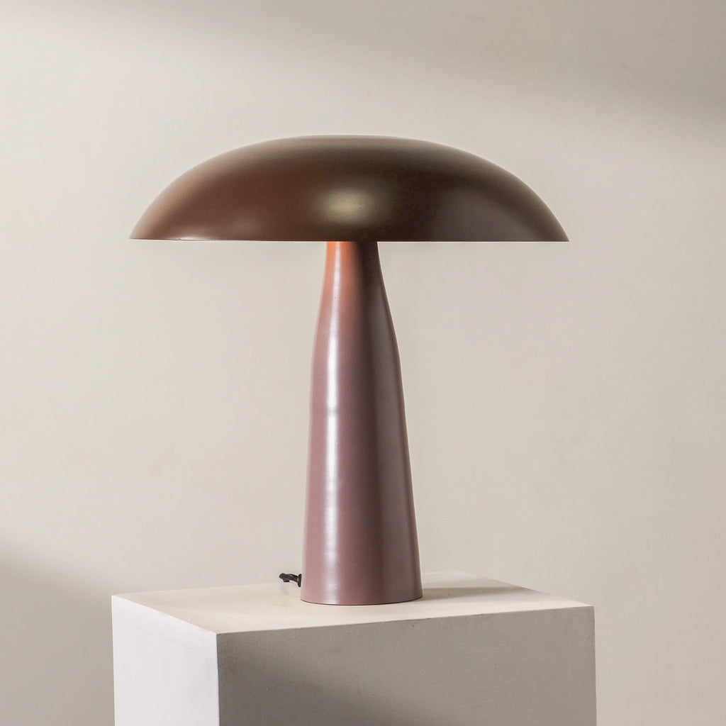 A study in tone and restraint, the Glint Table Lamp pairs a rounded dome shade with a subtly tapered base—crafted in gloss-finished metal and grounded by a softly muted, matte top. Its silhouette recalls classic mushroom forms, reinterpreted through a slim, modern lens. The combination of textures—gloss against matte—creates quiet contrast, while the two colourways, Mauve and Rose Dust, add warmth and softness. Part of the Tender Forms collection, Glint is designed to evoke calm through curve and proportion. It brings a sense of softness to structured interiors and architectural weight to gentler spaces. Perfect for smaller consoles, shelves, or layered bedside tables. Pair with low books, natural stone objects, or brushed metal trays for a tonal, cohesive look.