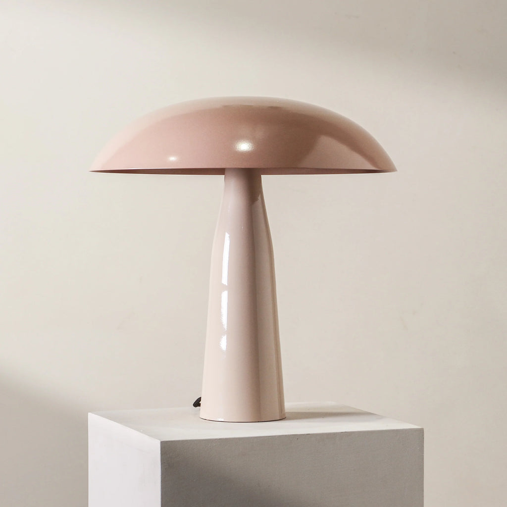 A study in tone and restraint, the Glint Table Lamp pairs a rounded dome shade with a subtly tapered base—crafted in gloss-finished metal and grounded by a softly muted, matte top. Its silhouette recalls classic mushroom forms, reinterpreted through a slim, modern lens. The combination of textures—gloss against matte—creates quiet contrast, while the two colourways, Mauve and Rose Dust, add warmth and softness. Part of the Tender Forms collection, Glint is designed to evoke calm through curve and proportion. It brings a sense of softness to structured interiors and architectural weight to gentler spaces. Perfect for smaller consoles, shelves, or layered bedside tables. Pair with low books, natural stone objects, or brushed metal trays for a tonal, cohesive look.