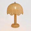 Our Marigold Table Lamp mimicks the shape of an umbrella. Featuring an organic scallop edge this designer lamp is meticulously hand woven in rattan whilst supported by a study metal frame. The lamp light is soft and creates a warm glow when turned on showcasing the woven rattan. When not in use this laamp is a striking sculptural show piece. Perfect for console, side table or bedside. Please note: Rattan is not designed for full outdoor use. If placed outdoors or even in covered outdoor areas, it may weather, fade, or change over time due to exposure to sunlight and moisture. We recommend indoor use or placing it in well-protected areas.