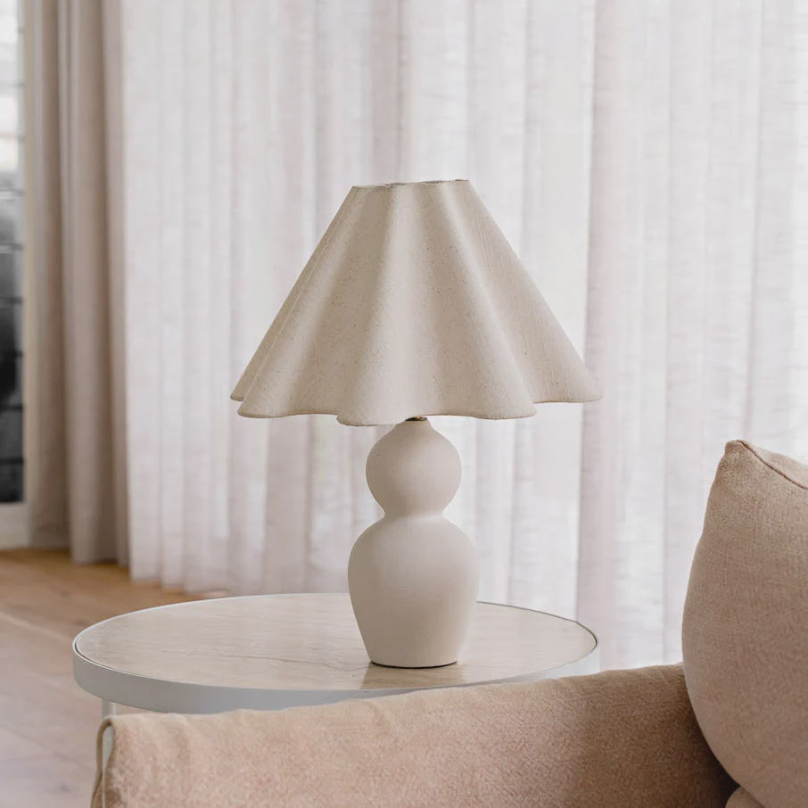 Introducing the Mila Lamp – a beautiful and unique table lamp option for any space. This lamp features a stunning ivory, ceramic matte base with gentle curves that are simply divine. The linen lampshade emits a soft, warm light that is perfect for relaxing or creating a romantic ambiance. Whether you're looking for a new statement piece for your living room or bedroom, the Mila Lamp is sure to add a touch of elegance and sophistication.