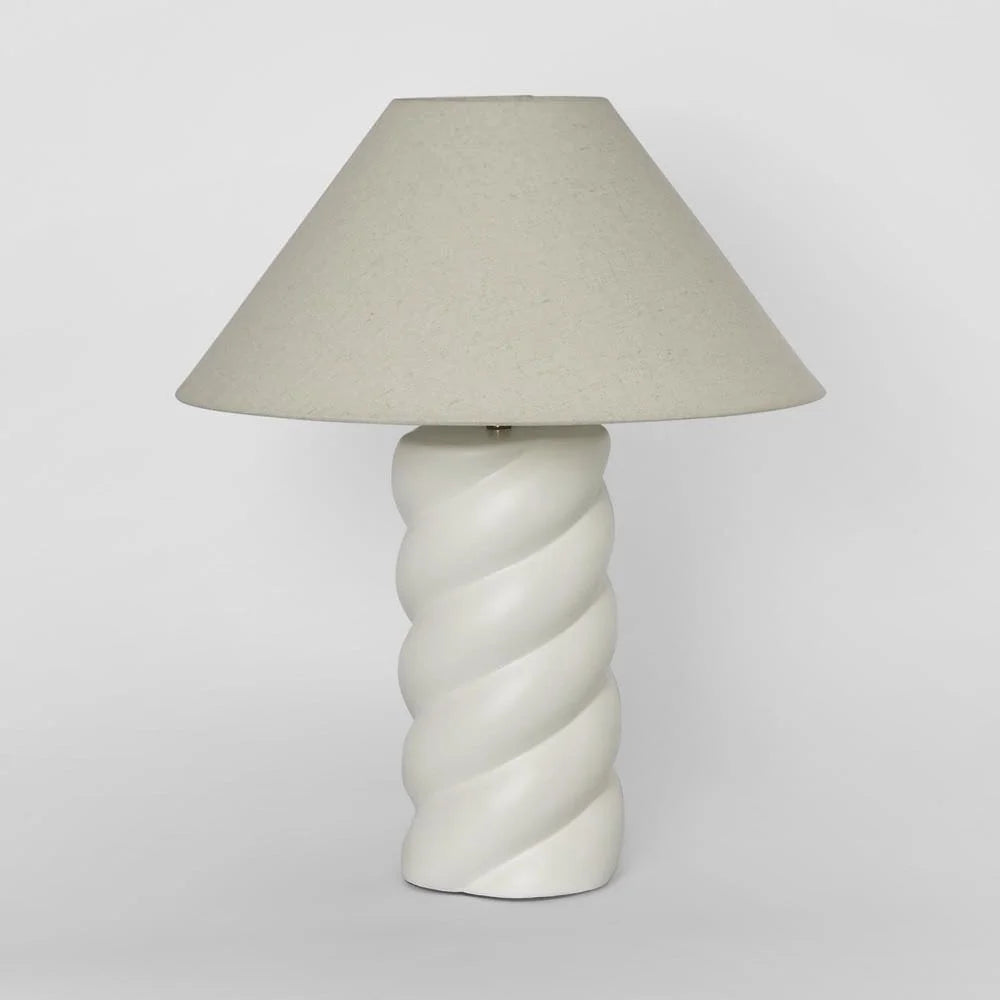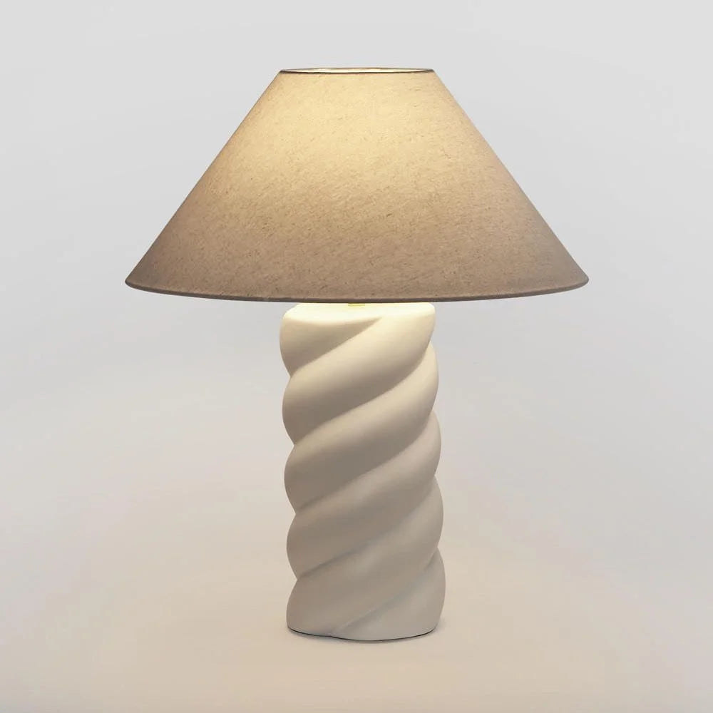Twist up your decor game with our Twist Column Lamp and Shade, the perfect blend of sculptural elegance and modern style. The ceramic twist base adds a unique touch, infusing your space with personality and sophistication. Paired with a minimalist linen shade, this lamp effortlessly complements modern Montauk themes, making it an ideal addition to living rooms, bedrooms, or home offices. Quick assembly ensures you'll be enjoying its chic illumination in no time, while maintenance is as simple as a quick dusting to keep it looking sleek and stylish.