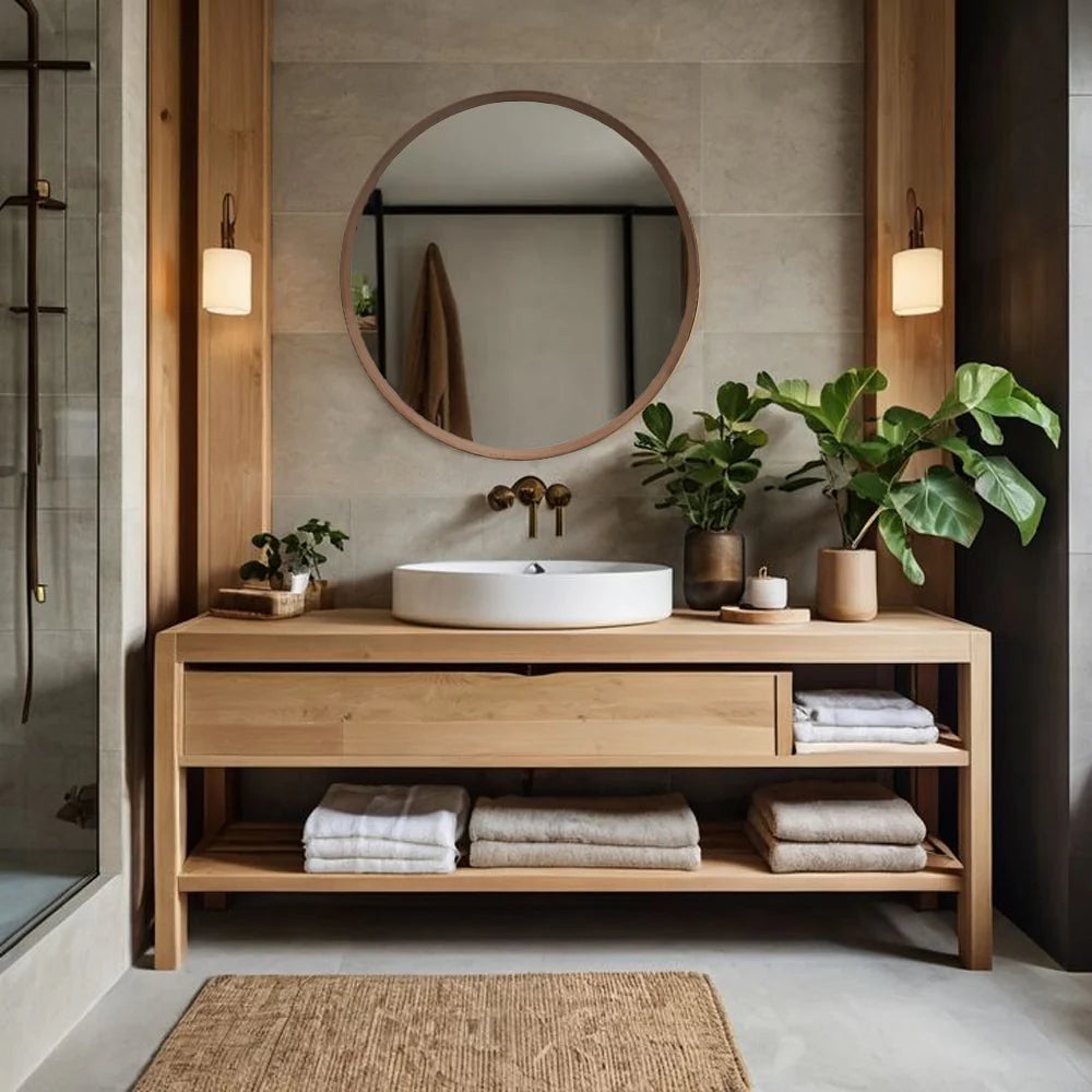 Hardwood Timber Mirror With A Walnut Stain. 6cm Deep Angled Frame