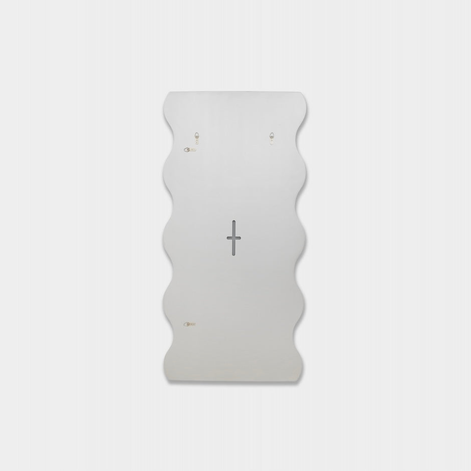 This mirror is available in two sizes and can be hung in two directions, as shown.