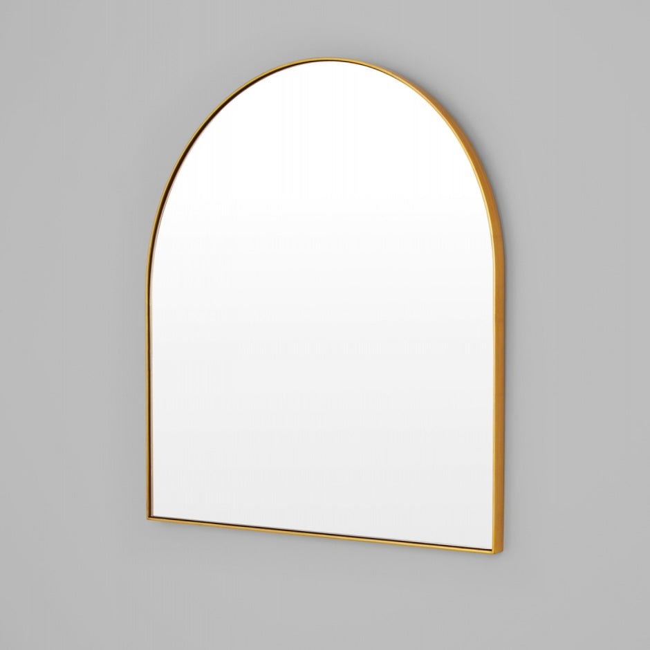 Our Brass Bjorn mirror frames feature hand applied gold leaf, giving each piece a warm antique look. This beautiful finish is achieved using delicate individual gold leaf sheets, and as such some small linear marks and joins in the metallic leaf may be visible.