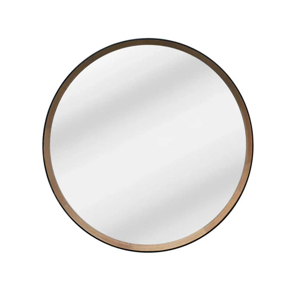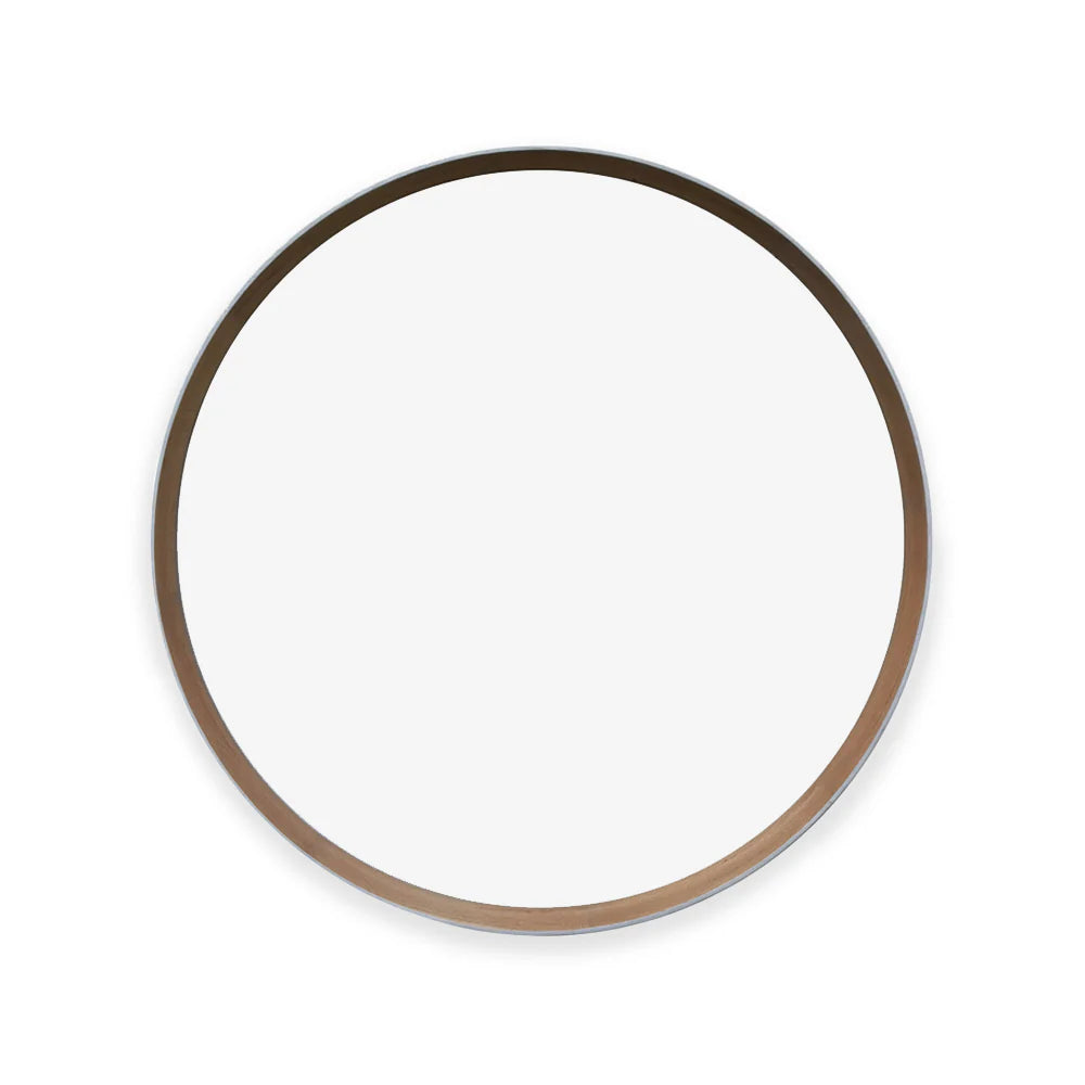 Natural Oak inner and matt black or white outer frame with flat mirror.