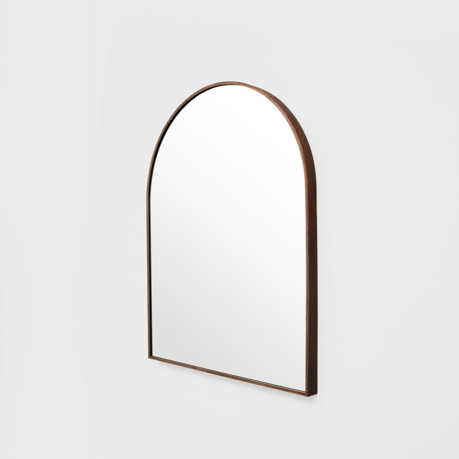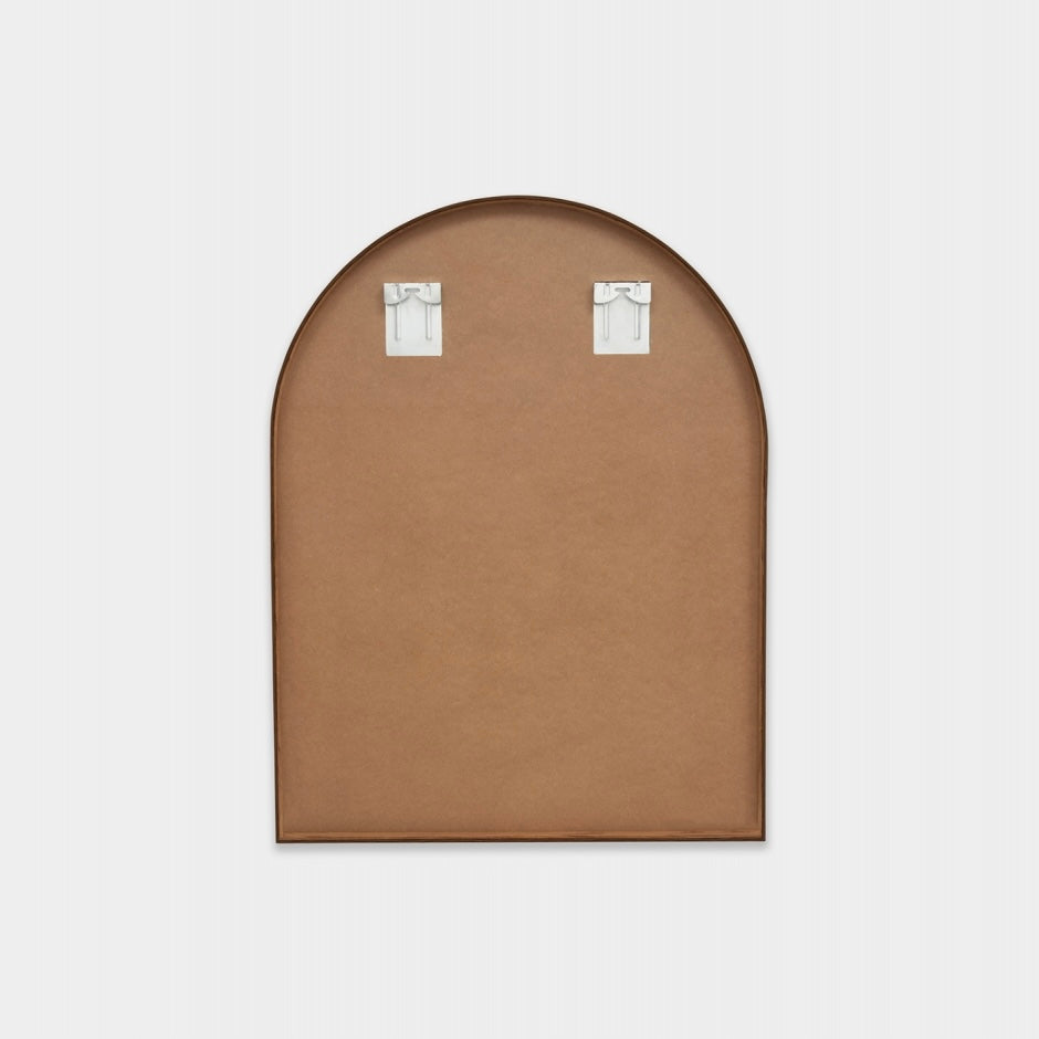 This mirror features a slim metal frame, with a beautiful walnut-look finish. This elegant timber-inspired colourway is endlessly versatile, complimenting both bright and neutral colour schemes.