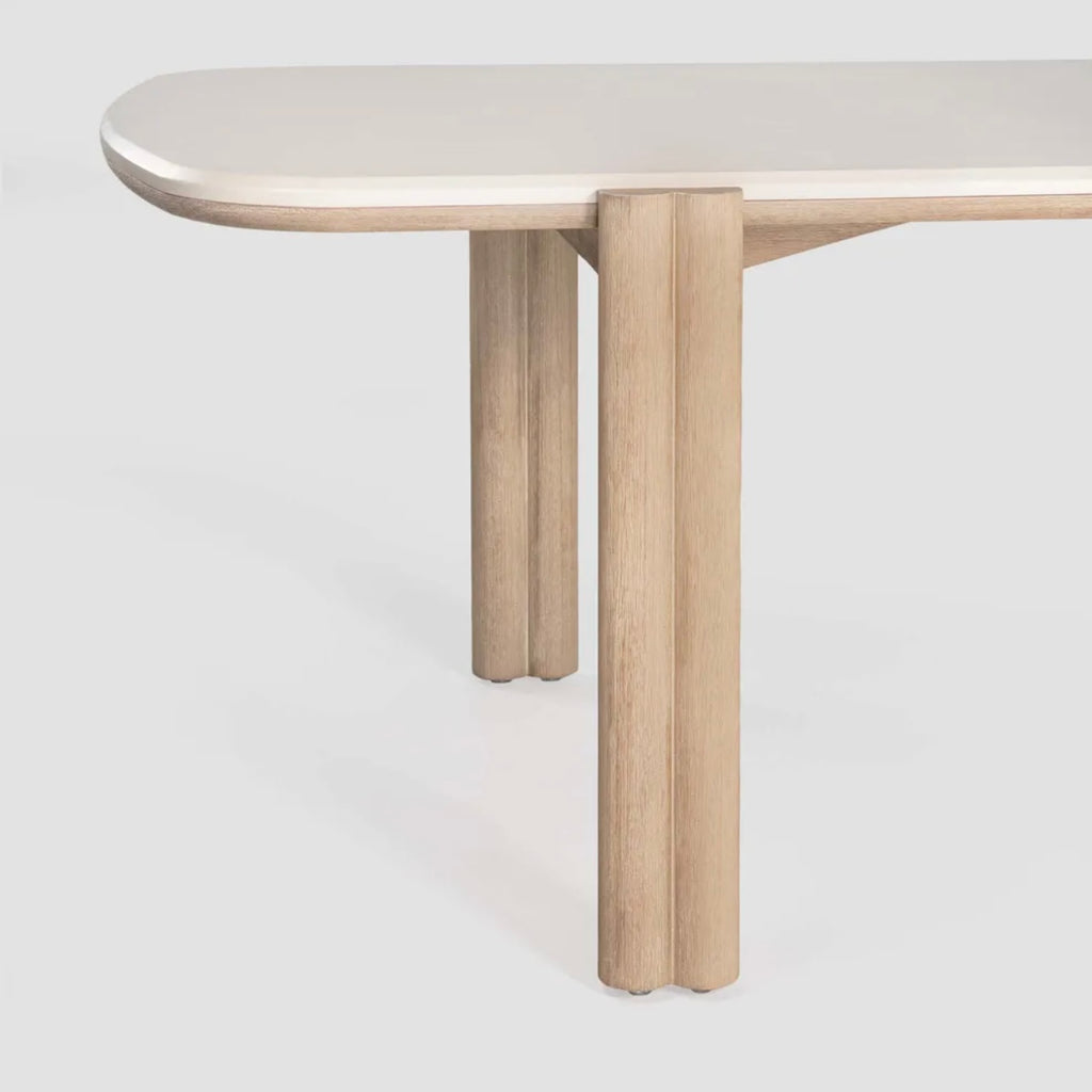 The Forma Dining table combines the naturalness of eucalyptus wood with the urbanism of fiber-cement. The table features a smooth, neutral-finished tabletop and a sturdy frame designed. It’s simple, modern design works well alongside the Forma Dining Chairs and Armchairs. Measuring 240cm in length, it provides ample space for dining and entertaining.