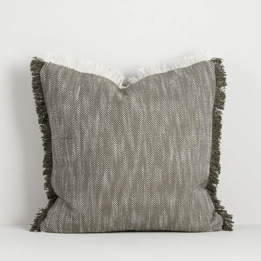 Add visual interest and dimension to outdoor settings with the relaxed design of the Caspian cushion. Featuring earthy mangrove and ivory tones, the simple weave and two-tone fringing provides a simple, textural aesthetic for contemporary living spaces. Handwoven from soft PET yarn, this versatile piece works just as well styled indoors, especially in areas exposed to sunlight.