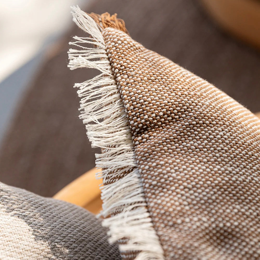 Add visual interest and dimension to outdoor settings with the relaxed design of the Caspian cushion. Featuring earthy mangrove and ivory tones, the simple weave and two-tone fringing provides a simple, textural aesthetic for contemporary living spaces. Handwoven from soft PET yarn, this versatile piece works just as well styled indoors, especially in areas exposed to sunlight.