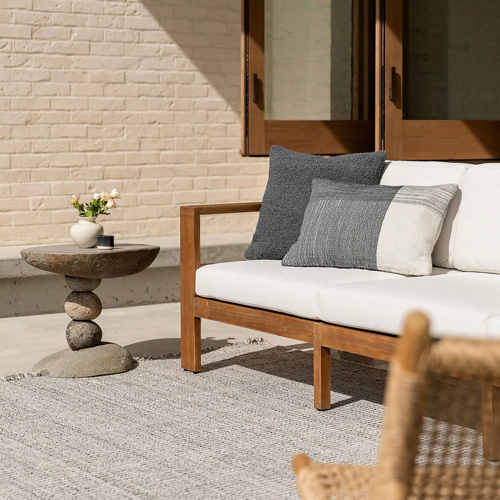 Embrace outdoor luxury with the understated design of our Finn cushion. Handcrafted from durable recycled PET yarn, its earthy mangrove tones are interwoven with soft off-white in a simple, oversized plaid. A versatile lumbar that is suitable for both indoor and outdoor use.