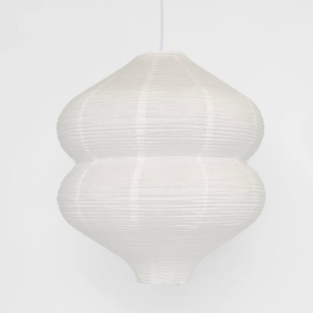 Paper shade with white lamp holder and power cord, flat pack design, lightweight