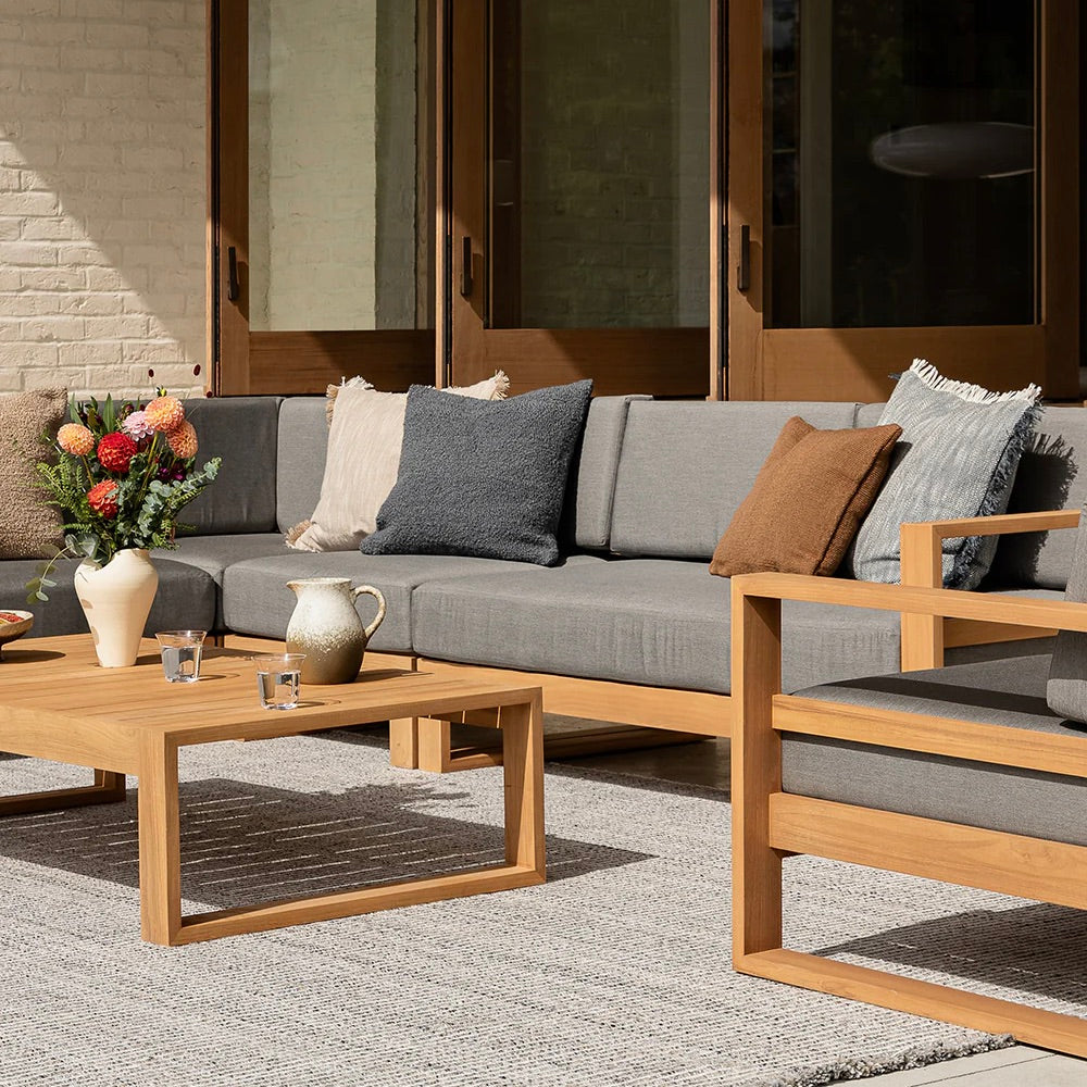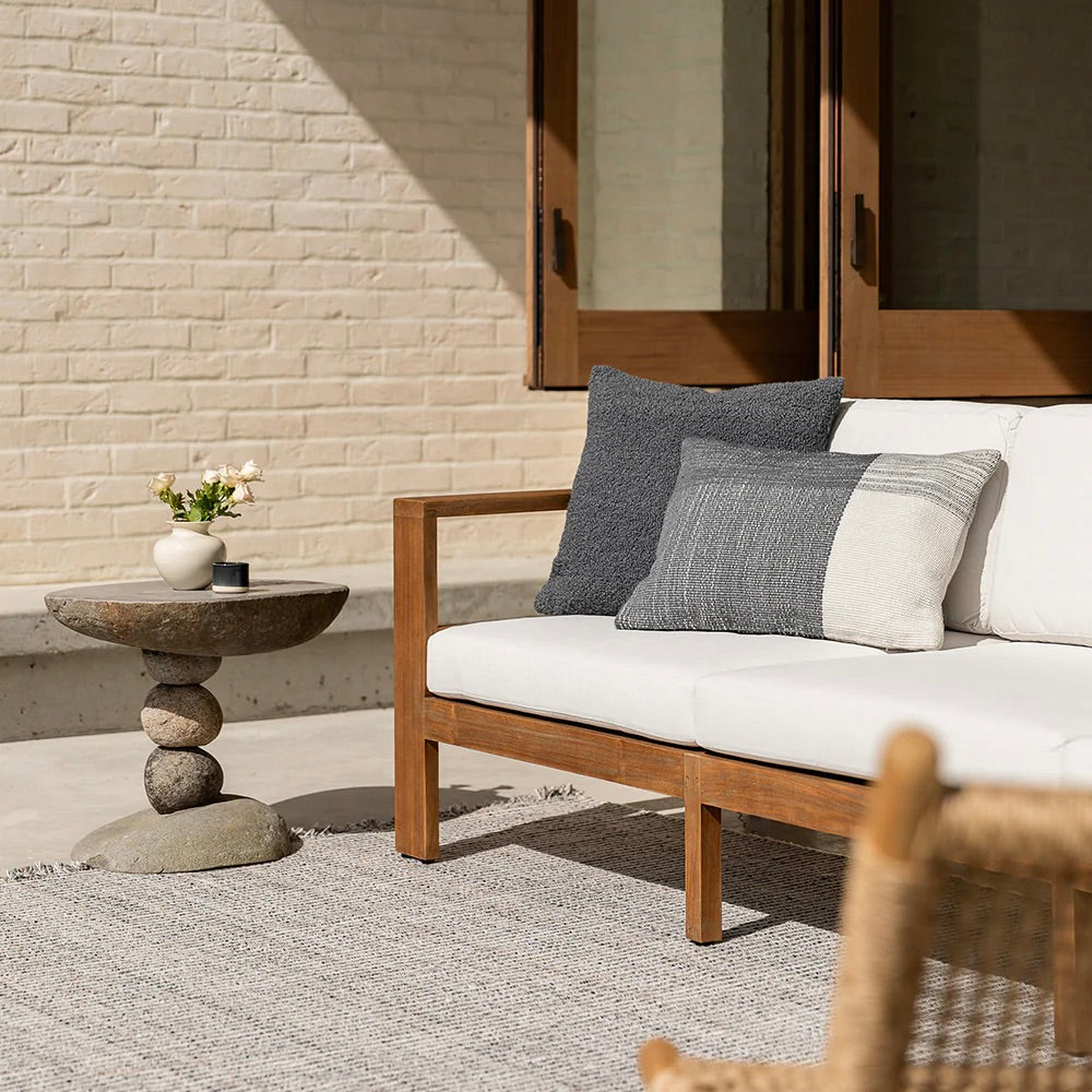 Bring an elevated, interior quality to the outdoors with the pared-back design and steel-blue tone of the Piper cushion. Handwoven from recycled PET yarn, Piper features a textured bouclé weave, creating a richly tactile surface that invites touch. Suitable for both indoor and outdoor spaces, this versatile, solid colour design pairs effortlessly with a wide range of cushions.