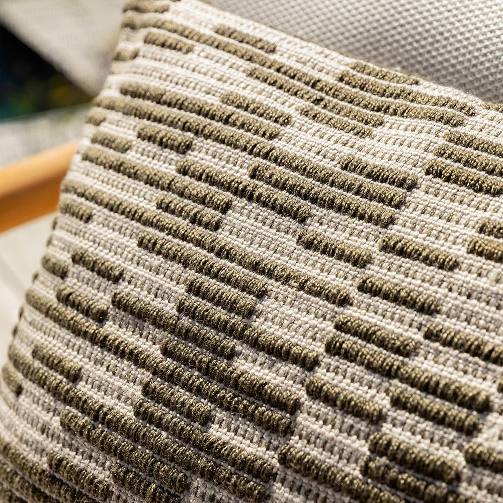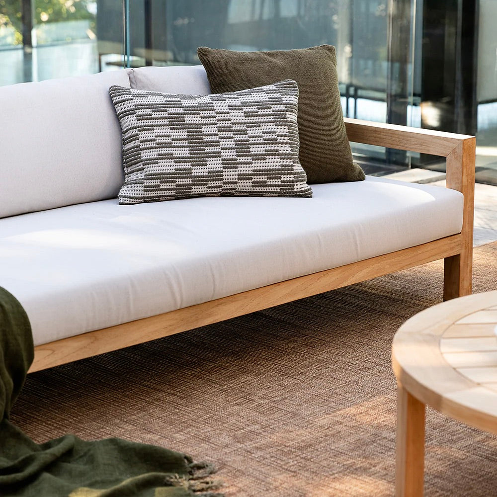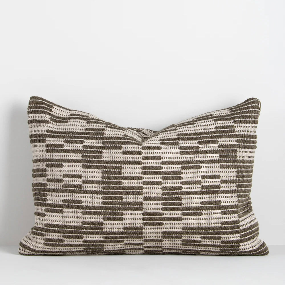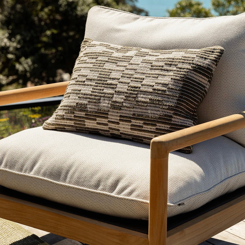 Add bold geometric design to the outdoors with the contemporary aesthetic of the Scout cushion. Featuring deep mangrove tones on a natural base, the raised woven pattern provides a simple, textural aesthetic for a modern living space. This versatile lumbar works just as well styled indoors, especially in areas exposed to sunlight.