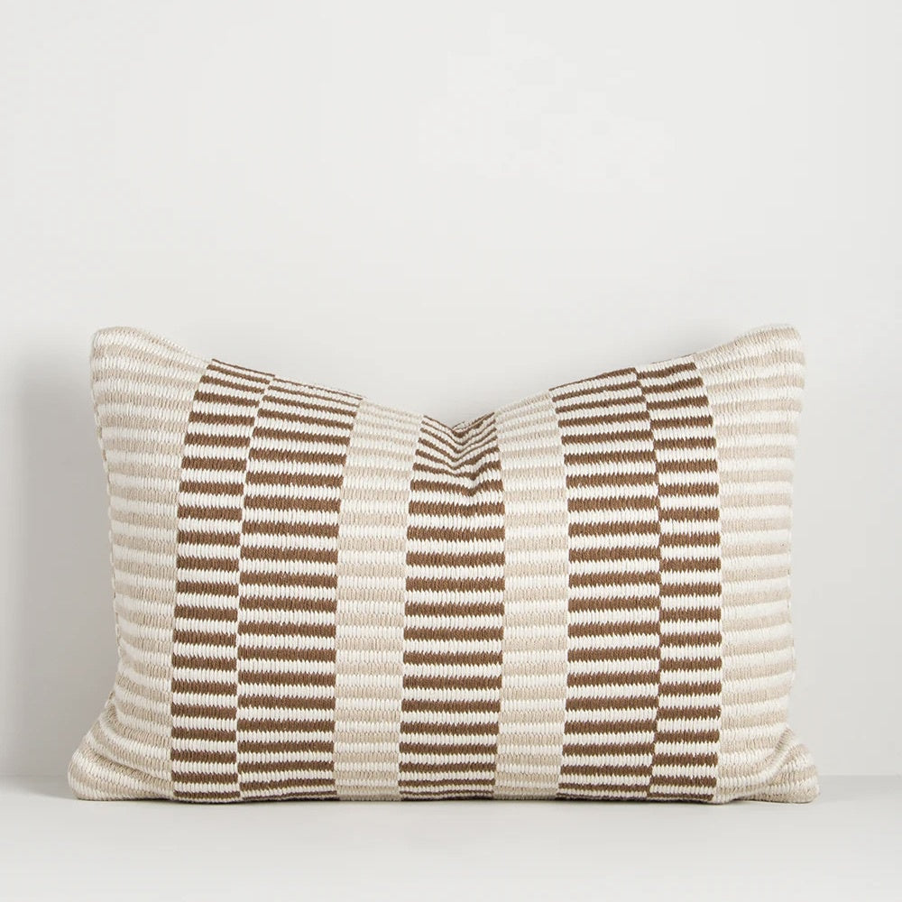 Bring your interior style outdoors with the artisan quality of the Sol cushion. Intricately handwoven in sage and mangrove tones, the offset linear design adds a striking focal point to exterior settings. Both functional and beautiful, this durable lumbar works just as well styled indoors, especially in areas exposed to sunlight. Pair with complementary mangrove and eucalyptus tones to emphasise the design and colour palette.