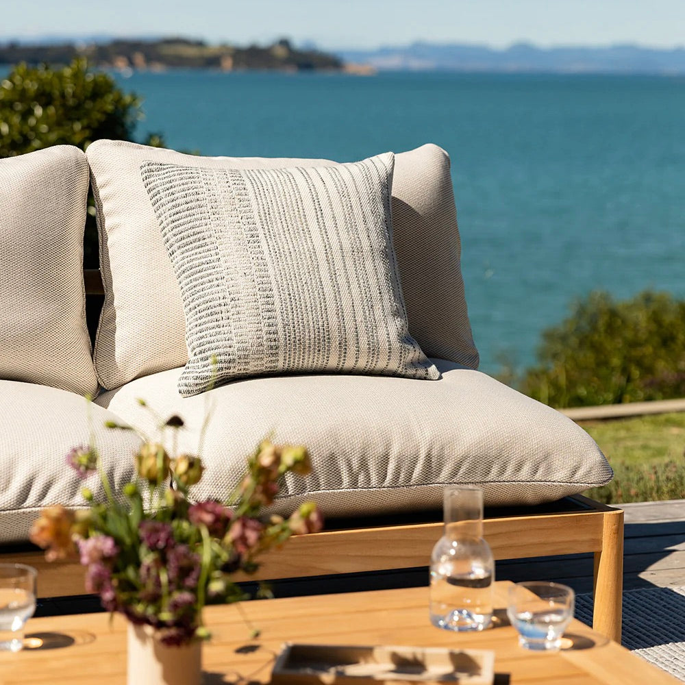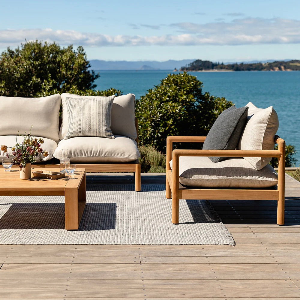 Intricately handwoven, the Sonnet adds an artisan quality to outdoor areas. A soft palette of slate and ecru exudes a refined, coastal ambience that invites us to relax and unwind. Pair with Clipper-Ocean to emphasise the design and colourway.