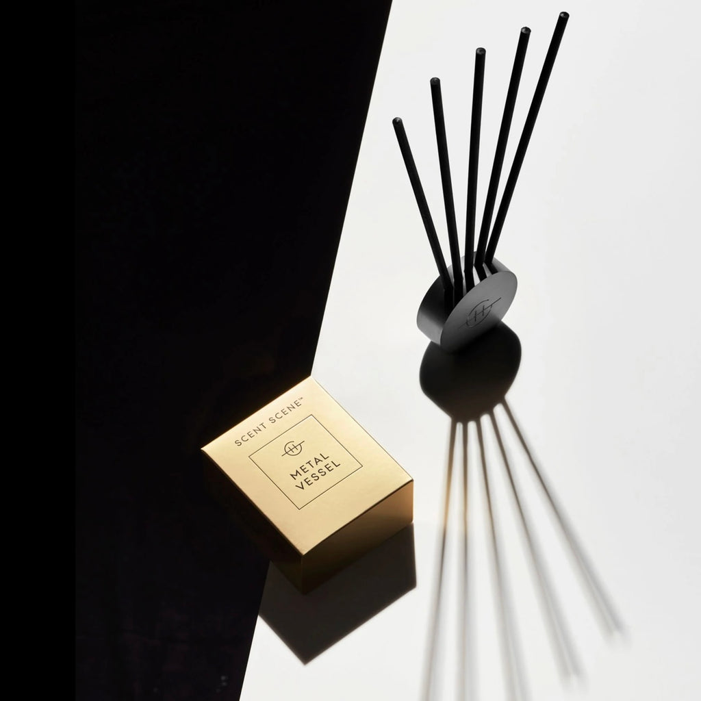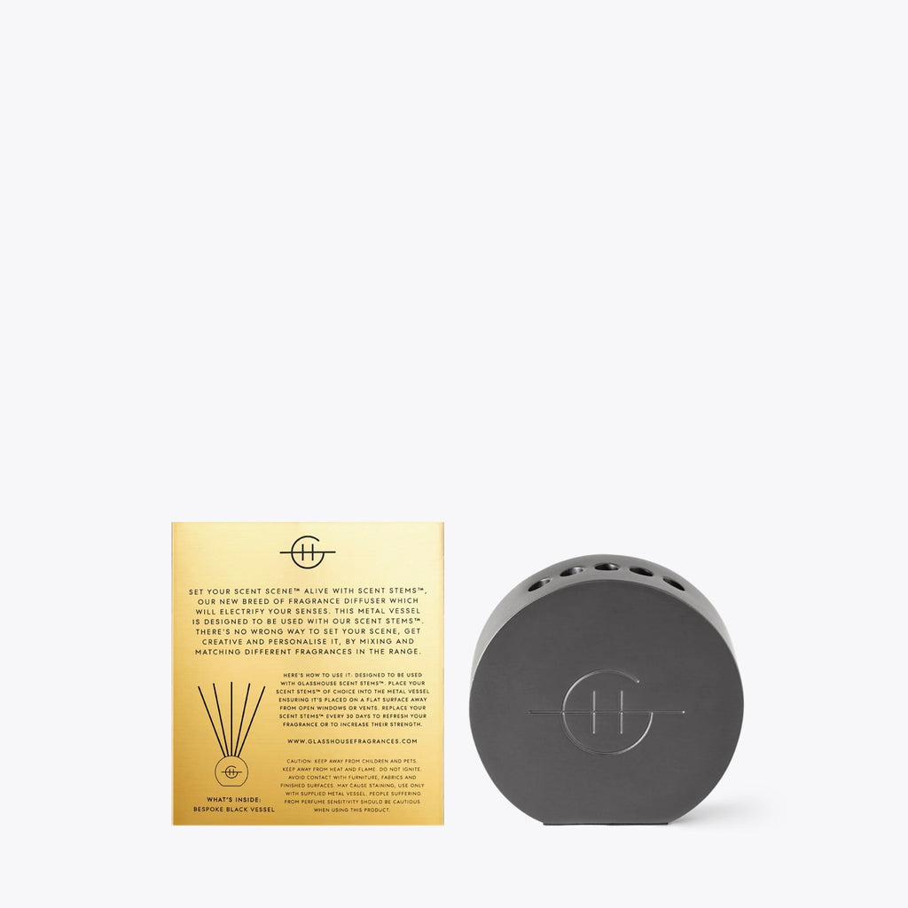 Designed to be used with GLASSHOUSE FRAGRANCES Scent Stems™. Place your Scent Stems™ of choice into the metal vessel ensuring it's placed on a flat surface away from open windows or vents.