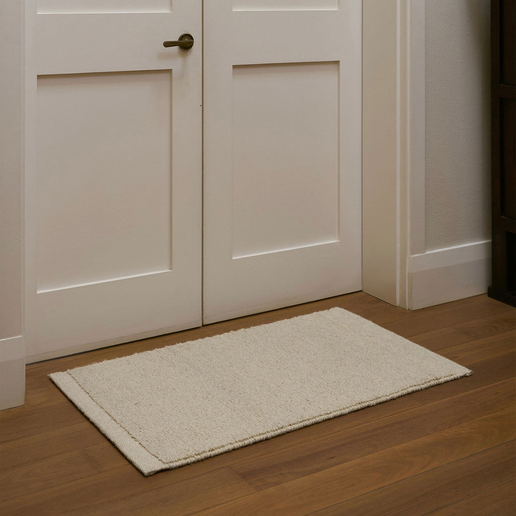 Woven with New Zealand wool in a distinctive popcorn-style weave and reinforced with a sturdy cotton backing. Elegantly presented in a calico drawstring bag, allowing for easy transportation and thoughtful gifting. Handcrafted in a certified GoodWeave factory, the mat upholds the highest standards of ethical production.The handcrafted nature means each mat is truly unique and there may be variations in exact measurements.