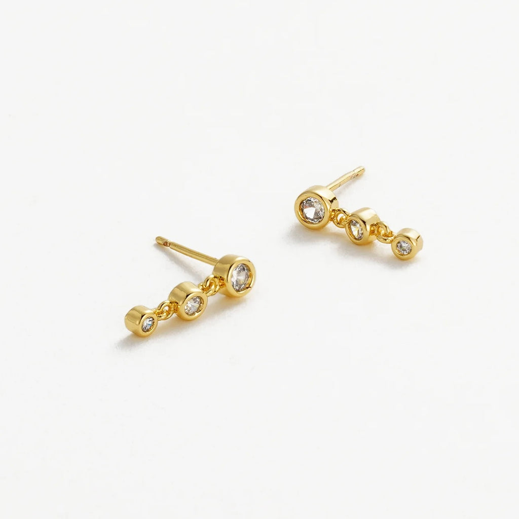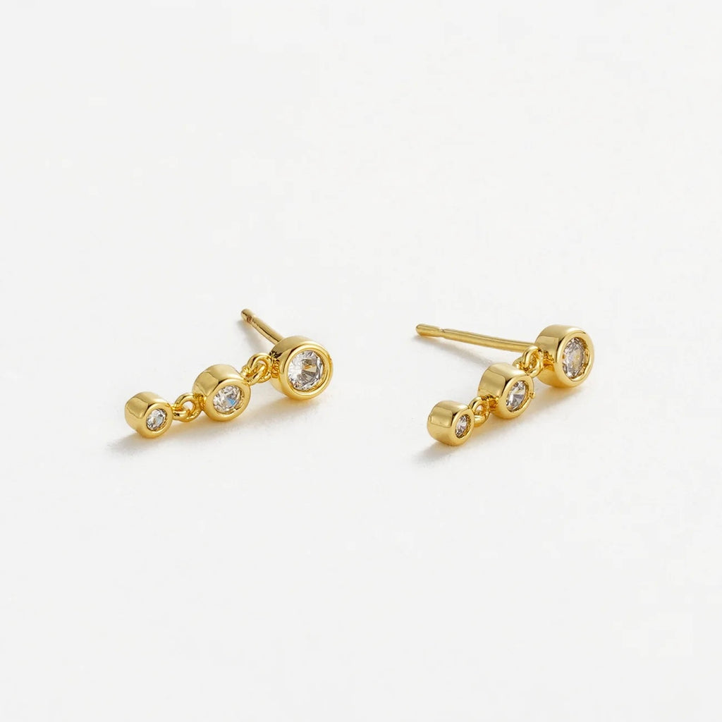 The Abby Earring features a cascading trio of bezel-set crystals that shimmer with every move. Crafted in polished gold, this elegant drop design offers a little extra drama while remaining timeless and versatile. Wear them solo for statement sparkle or pair back with our Amy Stud for a perfectly coordinated look.