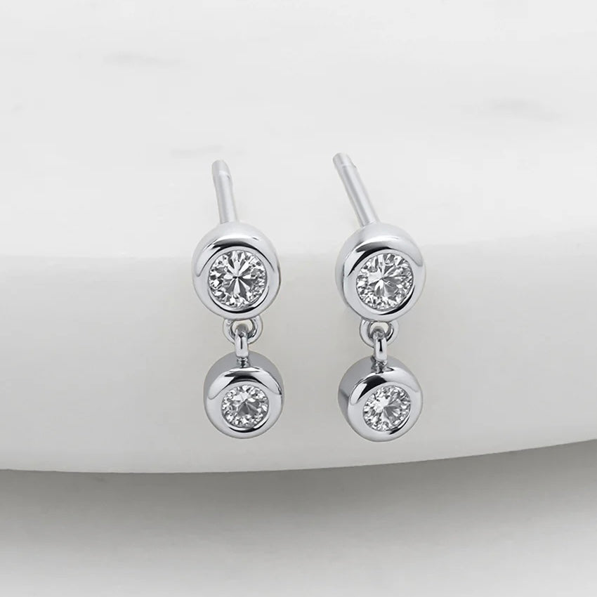 The Amy Earring features a double bezel-set crystal design that shines from every angle. Crafted in polished gold, its delicate drop style offers just the right amount of sparkle while staying lightweight and versatile. Wear them daily for understated elegance or pair with studs and hoops for a layered statement.Designed for modern women who want effortless style, every day.